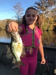 Captain Brian Behe of Buffalo Hunter Guide Service who fishes the Pocomoke River out of Snow Hill had his first trip of the fall season today. Captain Brian fished with Jay and his family and put young anglers Aerial and Cassidy on some fun crappie fishing. This fishing will get nothing but better as the water temperatures on the Pocomoke cool down.