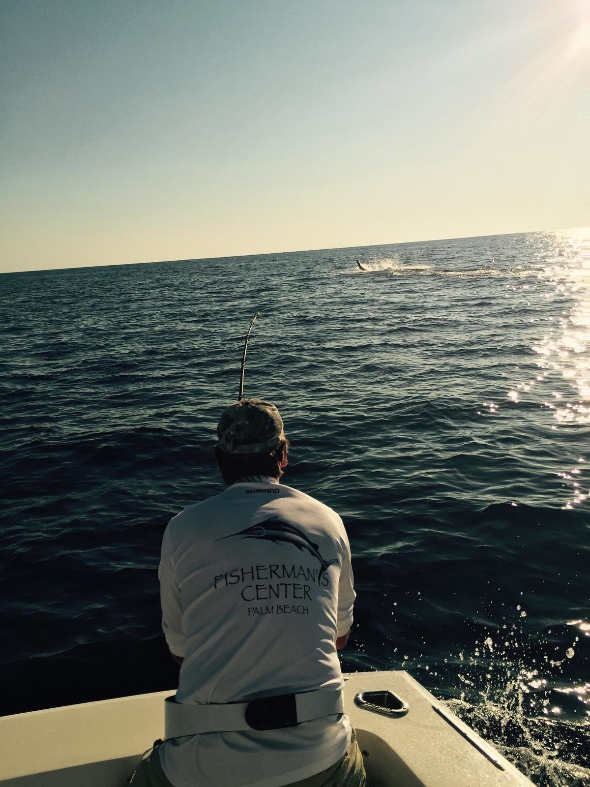 Captain Dave Black on board My Cin out of Sunset Marina had a great day today catching a white marlin, three gaffer mahi to 25 pounds and a nice blue marlin estimated at 350 pounds on stand up gear.  Here are a few shots of the blue one in action.