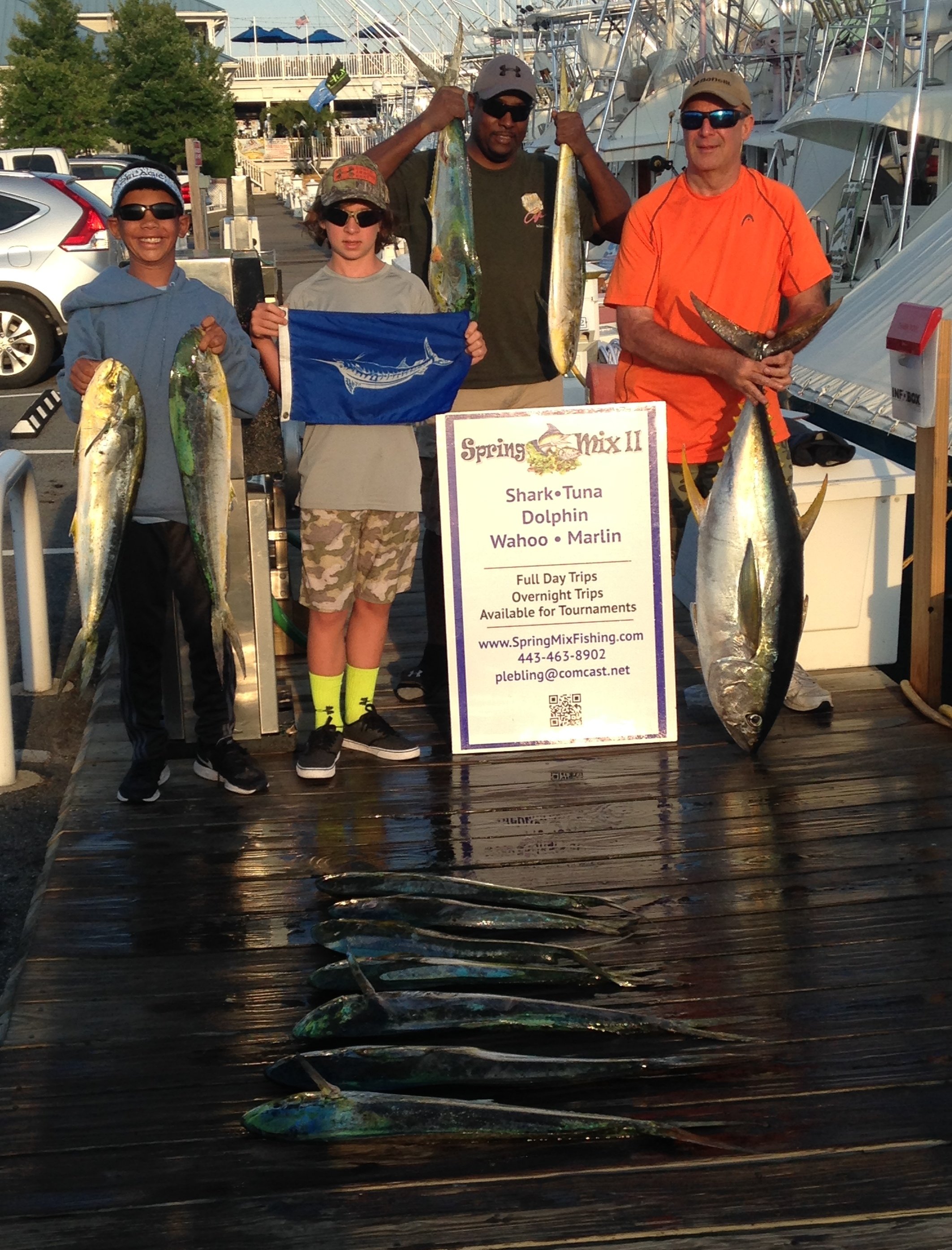 The Spring Mix II out of The Ocean City Fishing Center with Captain Chris Watkowski has been on a roll as of late.  Today it was with mate Marshall Freng in the Poor Man’s Canyon.  The Spring Mix II ended the day with one white marlin release, a real nice yellowfin and 10 mahi.