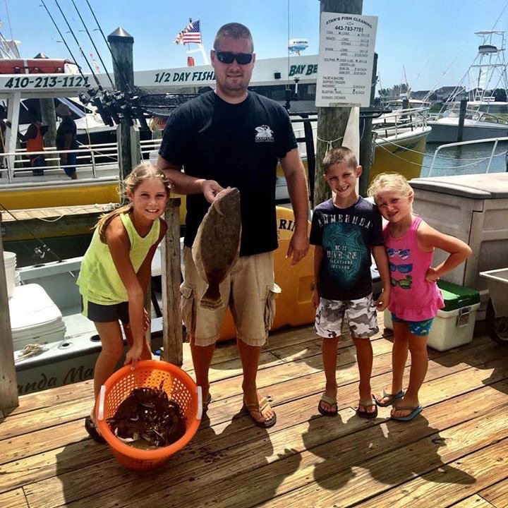 Captain John Prather on Ocean City Guide Service had a fun day on the bay today putting this family on a keeper flounder and some crabs.