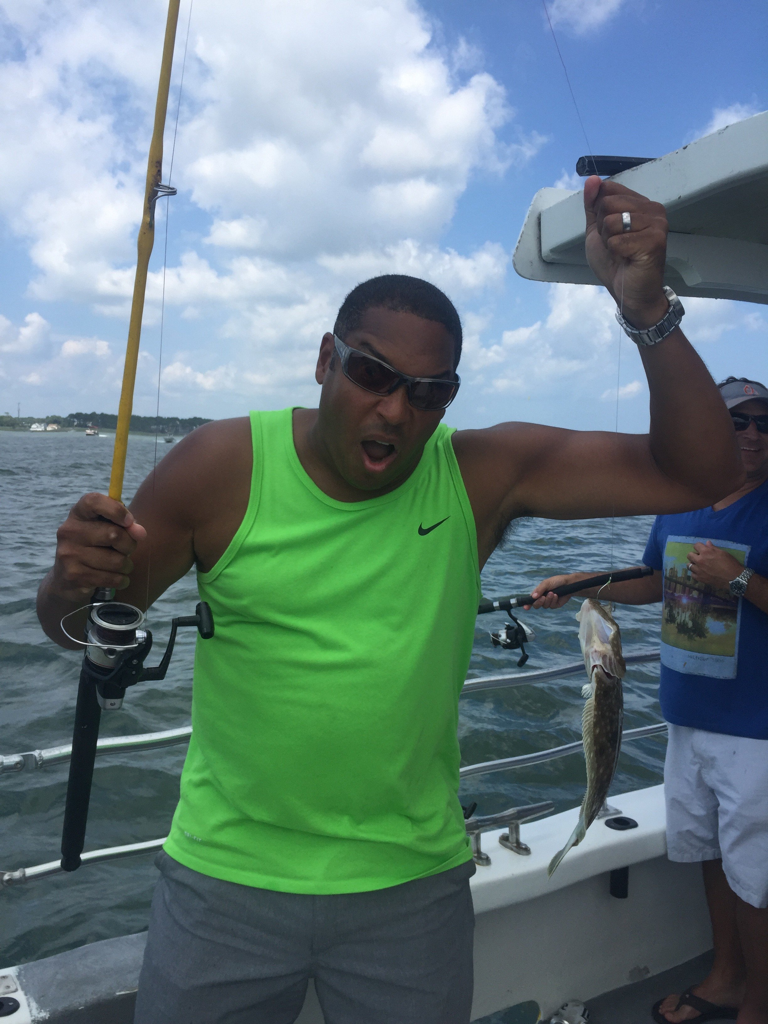 We had a great time on the Bay Bee today out of the ocean city fishing center for the eighth annual Sigma pi flounder pounder. Joe Jackson caught the biggest fish at 19 inches and Dan Hackett and Pete Jahries tied for the most fish. It was a great time with some great friends!