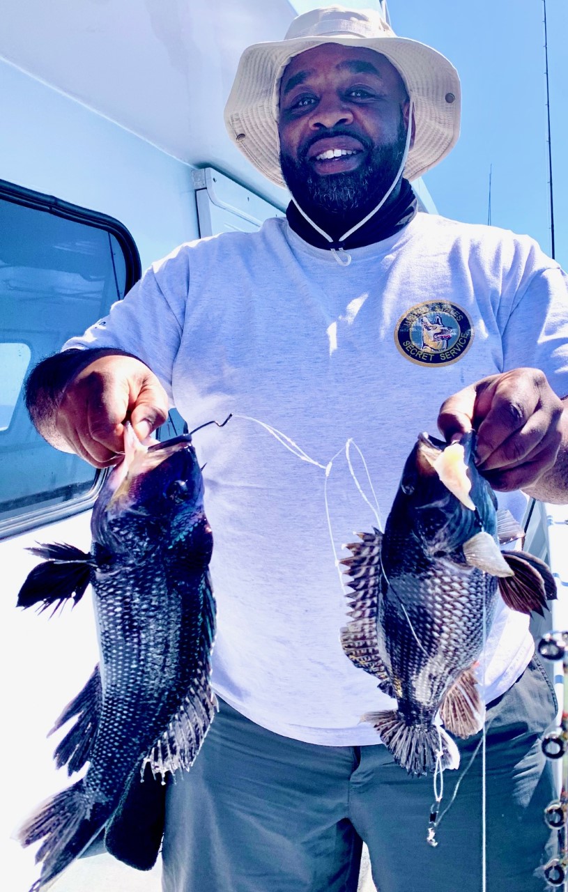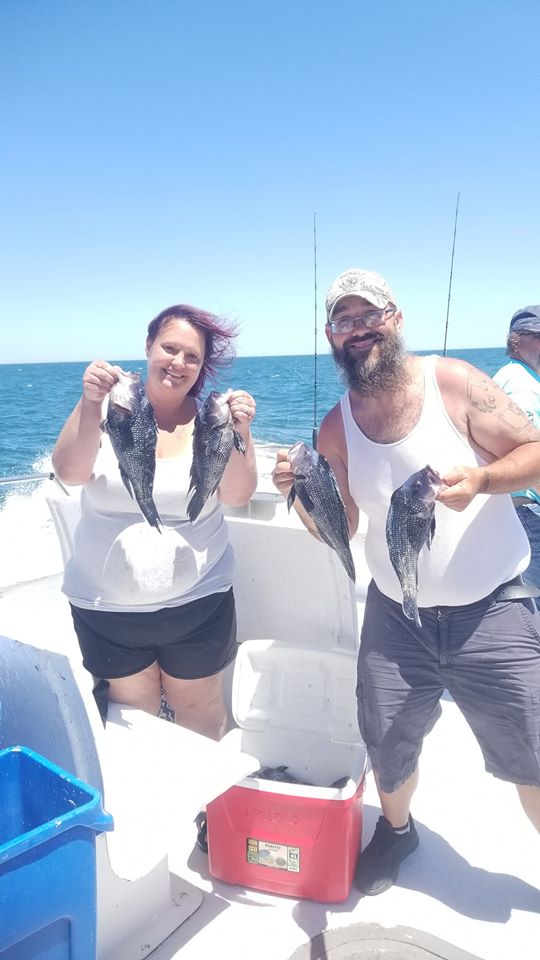 Sea bass weren’t enjoying the change in the weather as much as we were. Got right fussy. Never did turn on, not to a great bite anyway. Was steady enough to put some limits over the rail though.