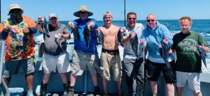 Noel Cook, an Ocean Pines local, Michael Haggerty from Baltimore, & Earl Miller of Philly all show off good sea bass.