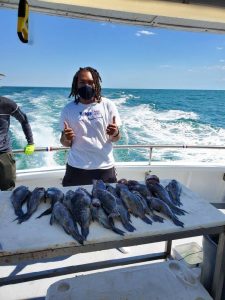 Captain Chris Mizurak of the Angler reported “rolly” seas, but it was more than fishable and they had a nice day of catching for their anglers.