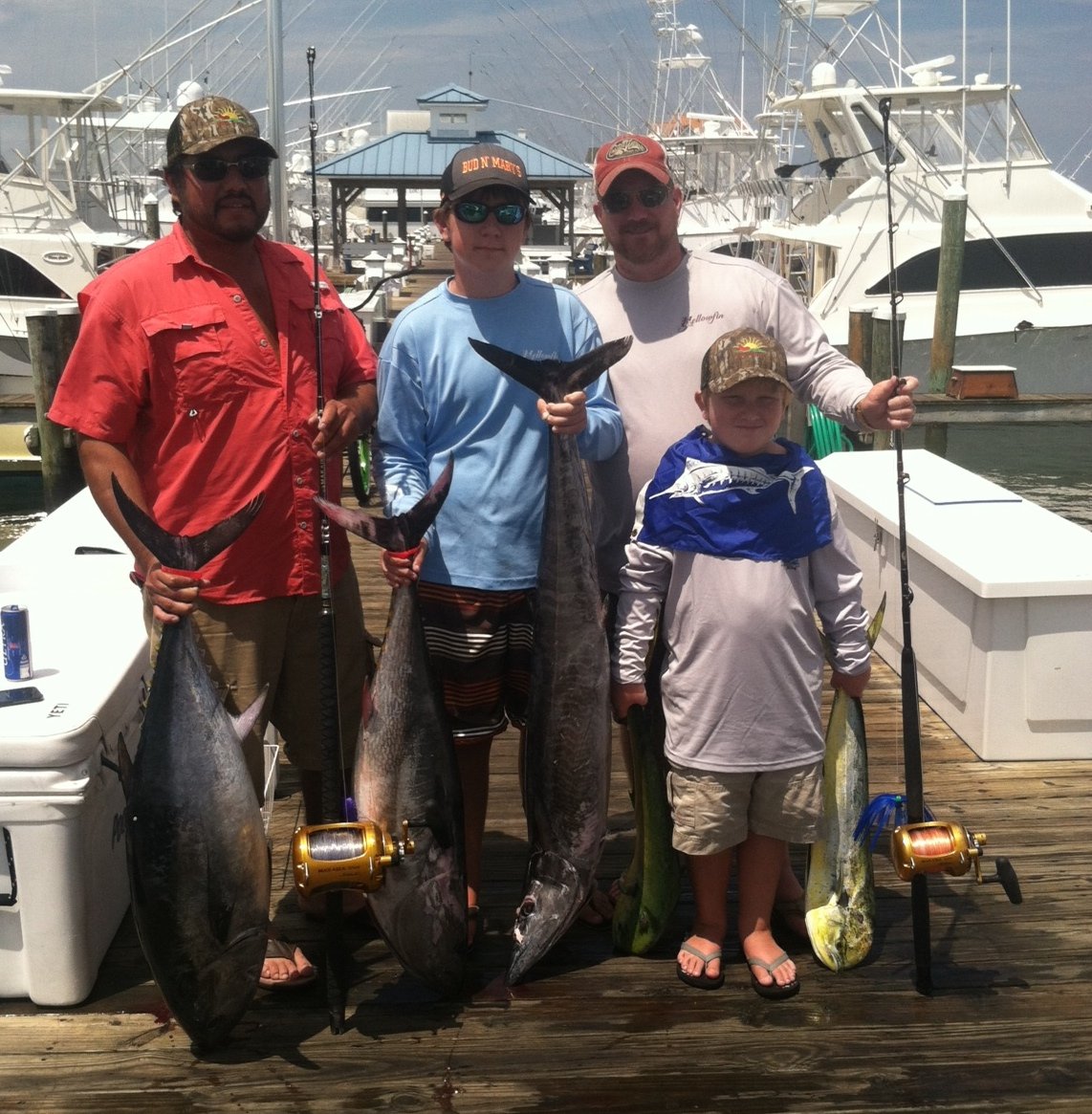 Rhonda’s Osprey with Captain Joe Drosey out of Sunset Marina had a great day for the Hanshaw family! Bruce Hanshaw had a white marlin release, a tuna and a wahoo and little Randy caught a tuna and two mahi.