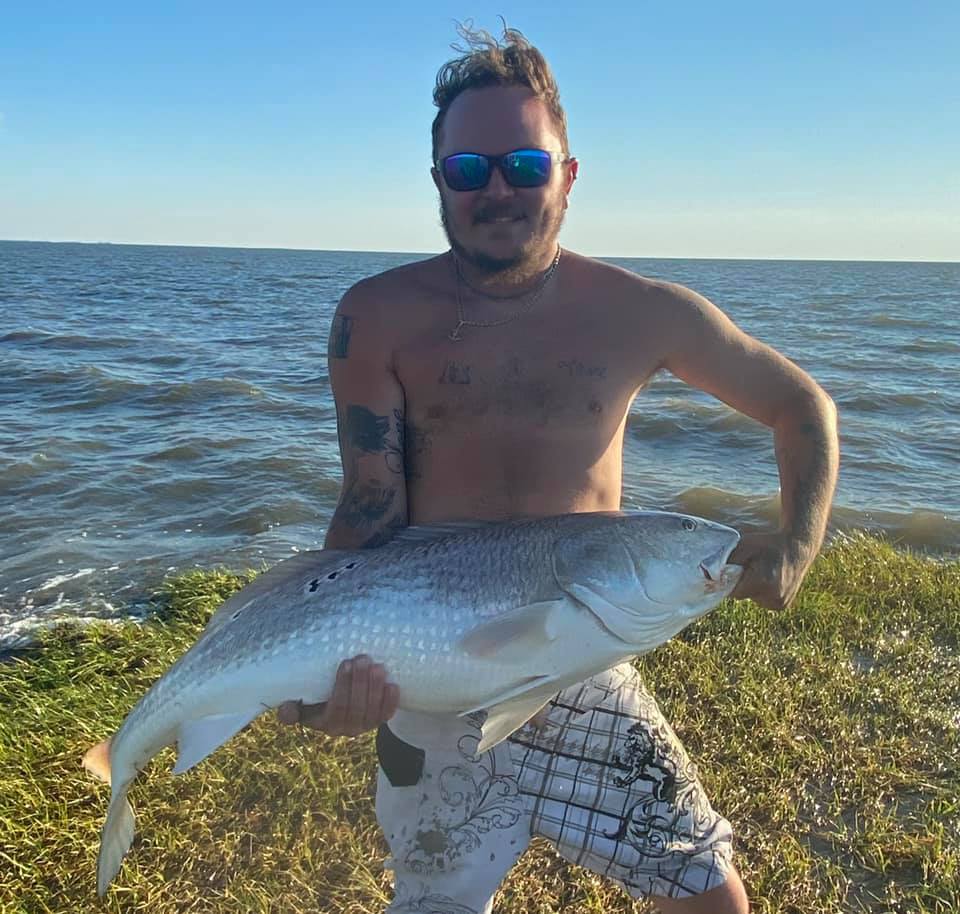 Donny Post was pleasantly surprised by this 19″ red drum that ate a peeler crab bait at the south jetty today.