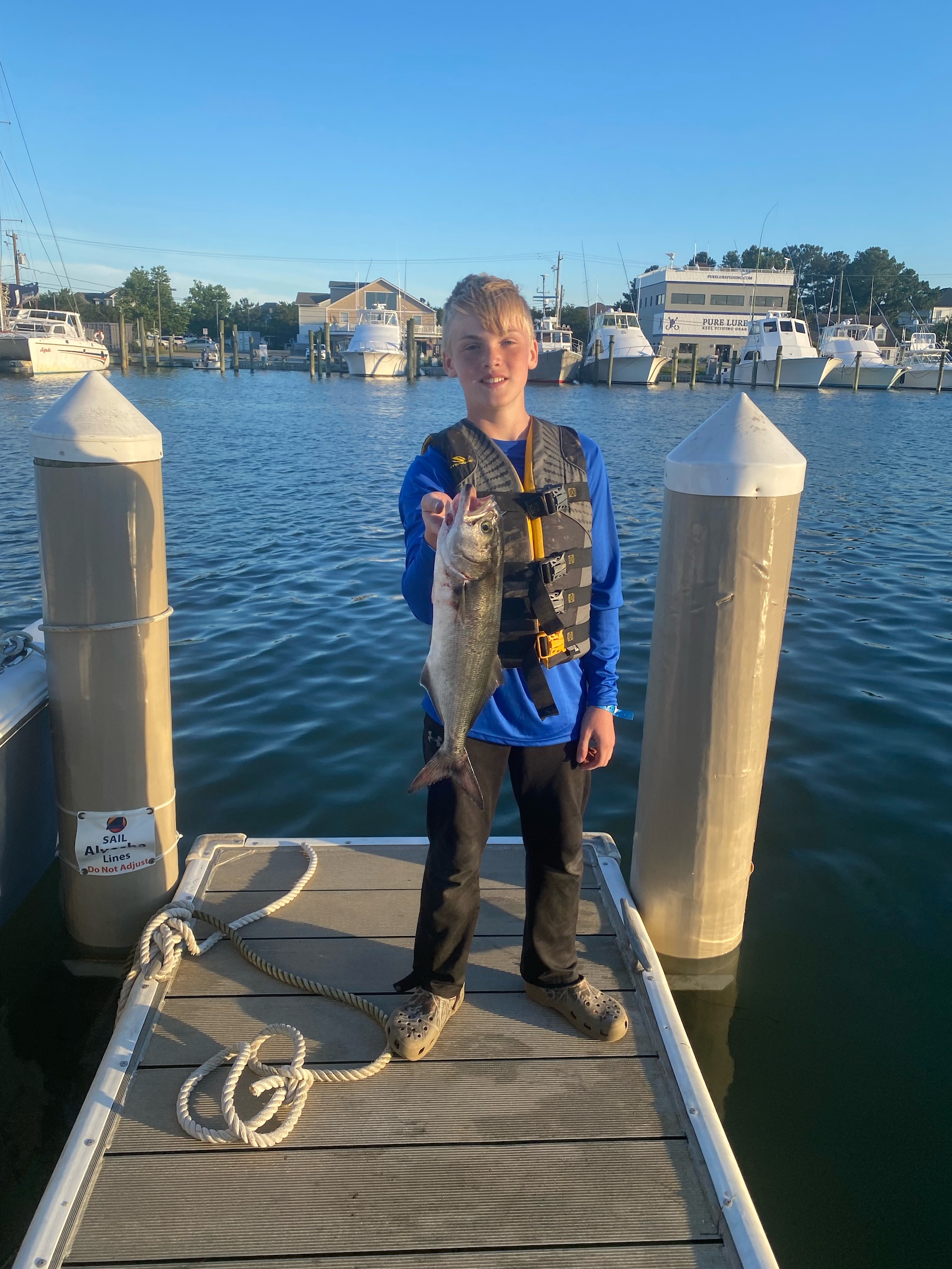 My buddy Curt Howell took Dalton Cooper from West Virginia out this afternoon for some fishing at the route 50 bridge and Dalton caught this nice bluefish on the Fish in OC Thing A Ma JIG. Dalton said this is is biggest saltwater fish.