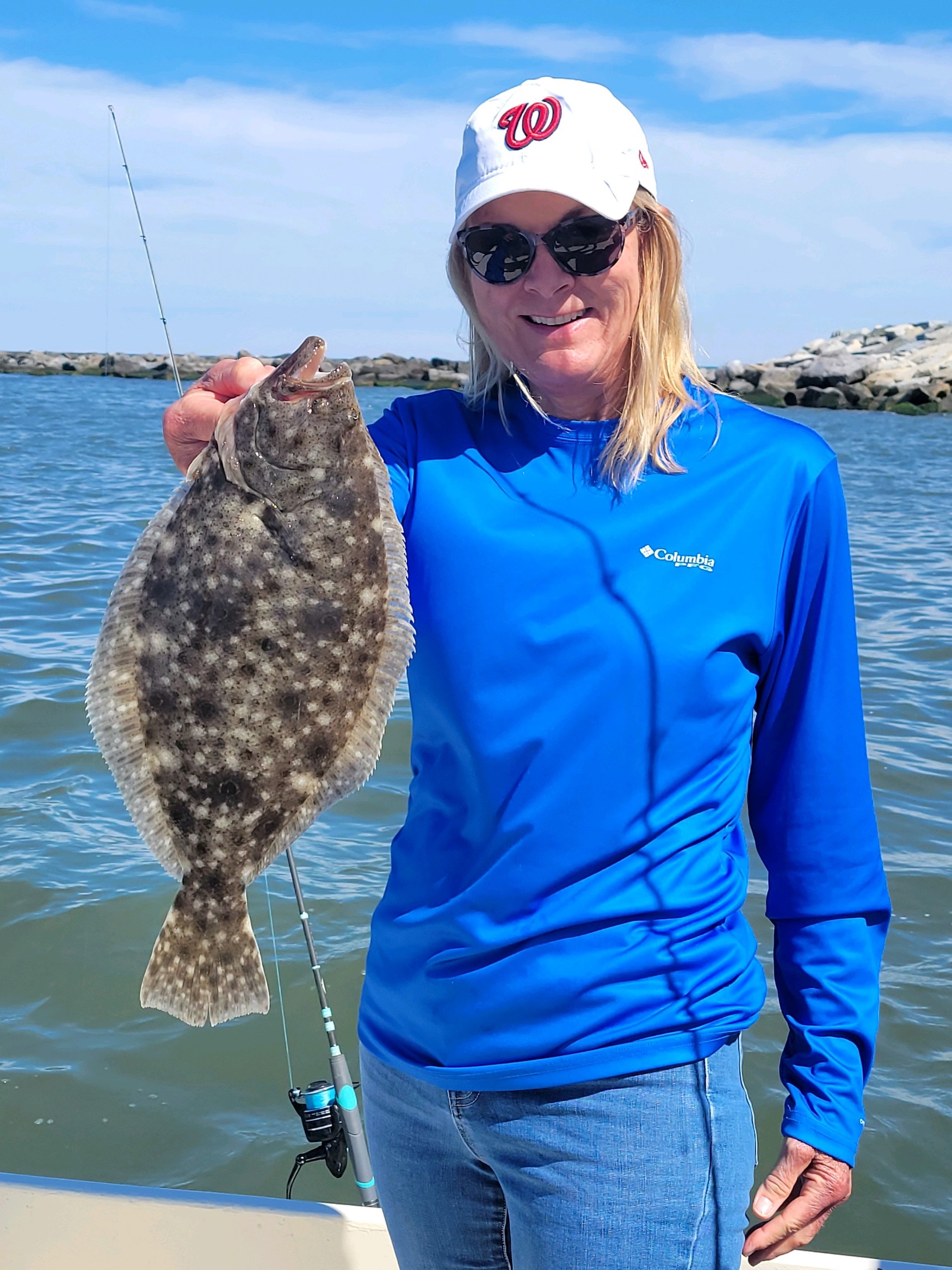 Mike G of Fin City Brews had a nice 21″ flounder from behind Assateague Island today caught on a white Gulp with minnow.
