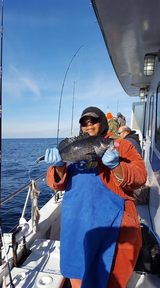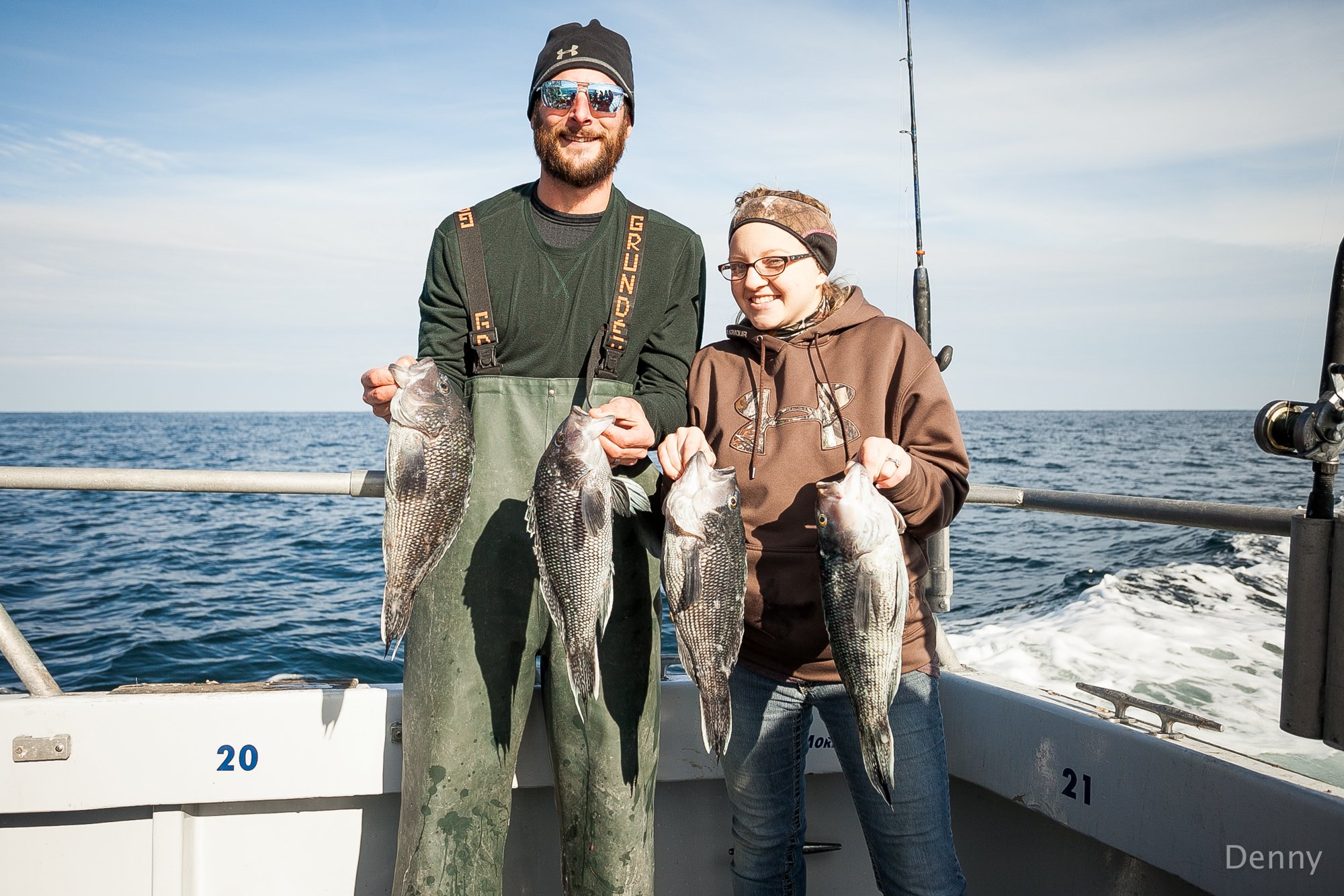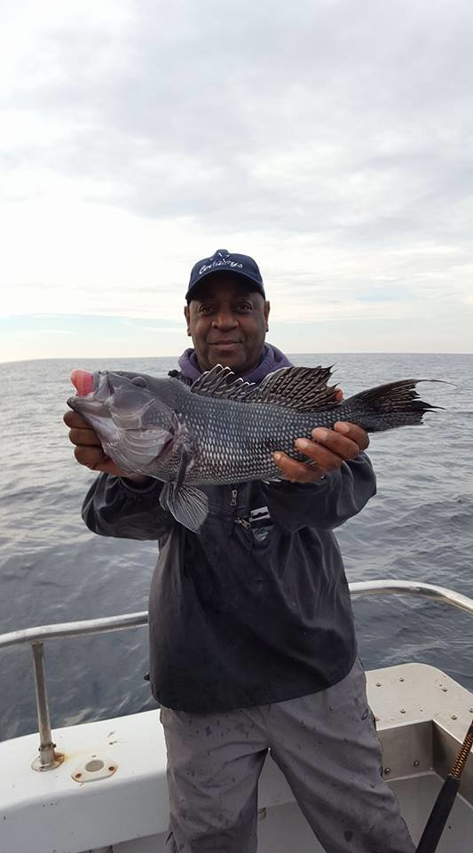 My buddy Nick Denny was crew for Captain Monty Hawkins on the Morning Star today and reported an awesome day on the water as well. Nick reported a boat limit of sea bass, a big 34″ bluefish and one 22″ flounder. The couple in the last picture were just married on Friday and celebrated with some nice sea bass.