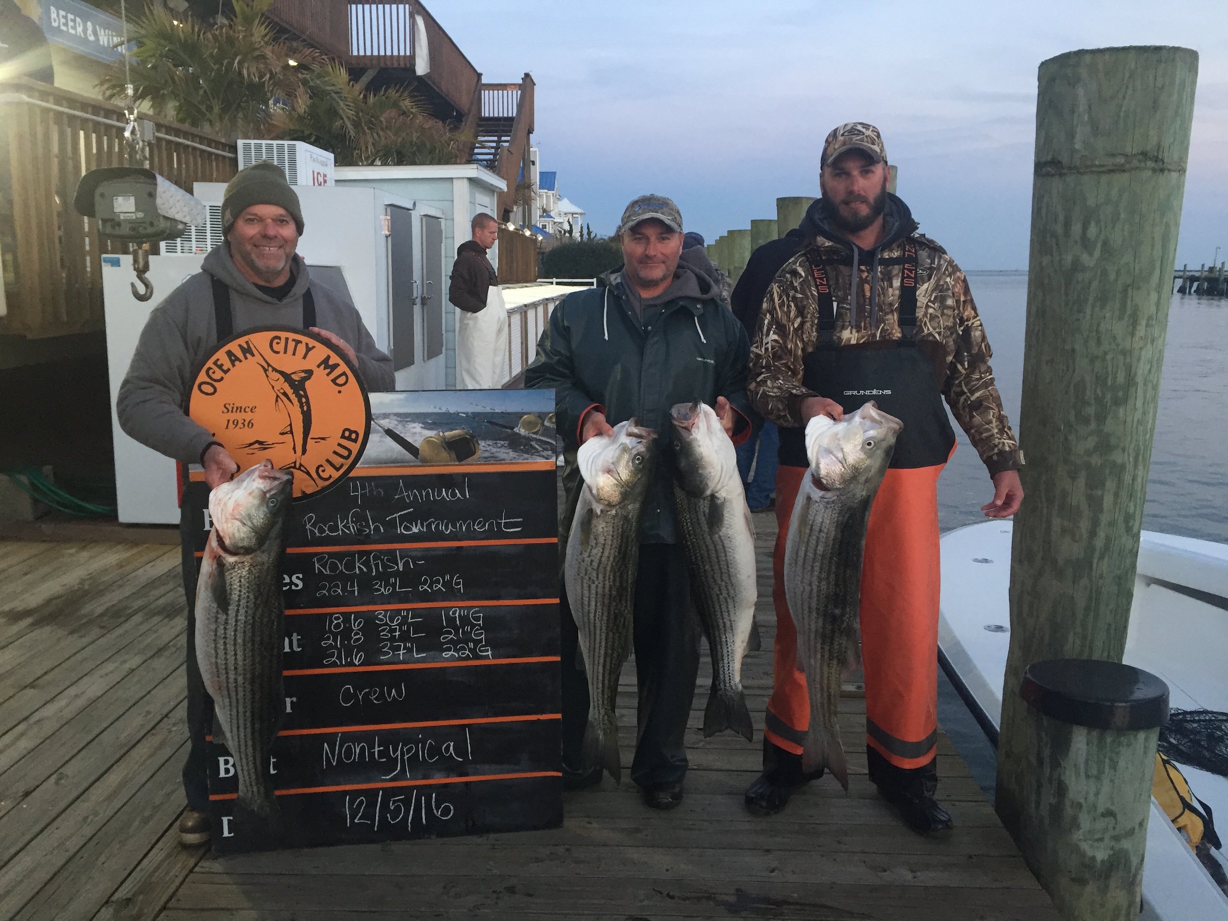 Today was the final day of the Ocean City Marlin Club’s 4th Annual Rockfish Tournament and for the 6th straight day nothing was caught to do any damage to the leaderboard. It really paid off for the boats that made the trip north to New Jersey waters early in the week because those fish held on to collect some nice prizes. Congratulations to the winners!