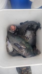 Captain Chris Mizurak of the party boat Angler reported better fishing today than they saw yesterday.  Although Captain Chris had to try a few spots he did end up putting his anglers on a really good catch of sea bass up to 3.5 pounds.