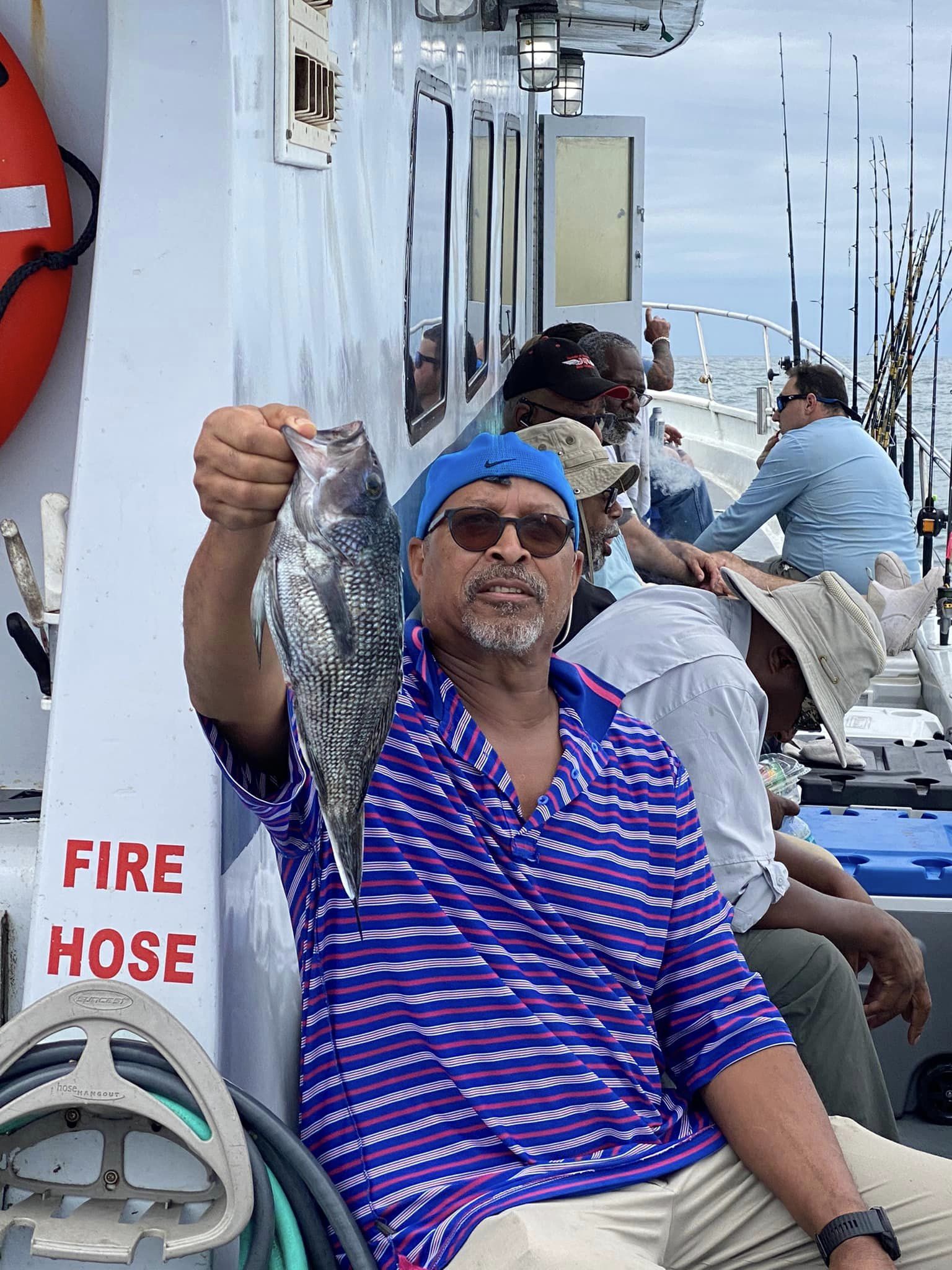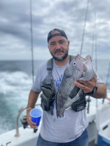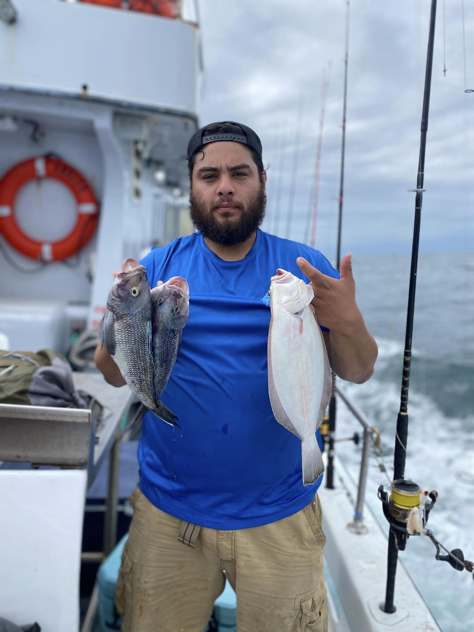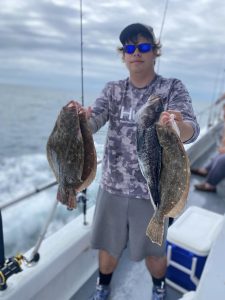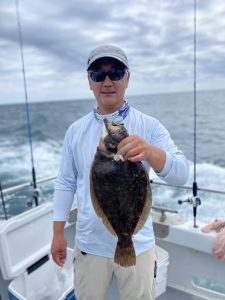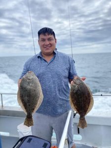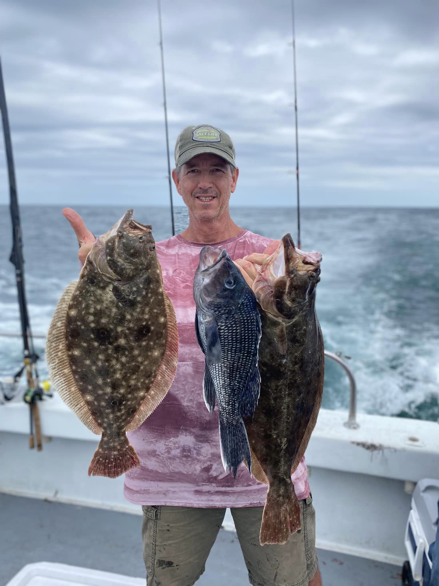 Captain Chris Mizurak of the Angler said sea conditions were better than expected today and the fish cooperated too with plenty of sea bass and flounder around the rail.