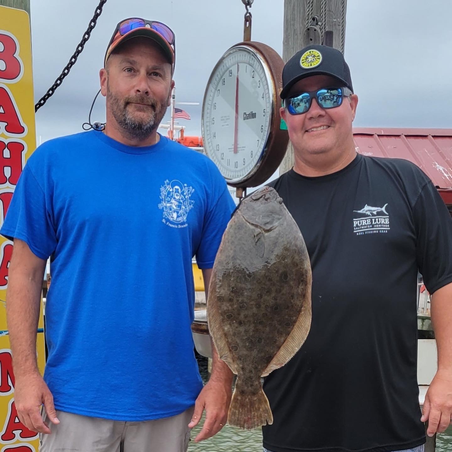 I posted a video on social media this morning at the shotgun start to the Bahia Marina Flounder Pounder saying that the team of Kenny Schoen and Rich Daiker was the team to beat….and I was right. 30 teams and over 100 anglers competed in today’s Flounder Pounder and once again Team Delicious was at the top of the podium. I fished with these guys just last week for a new episode of Hooked on OC and I can tell you…..they’re good. Congratulations! Here are the top three spots in the Bahia Marina Flounder Pounder.