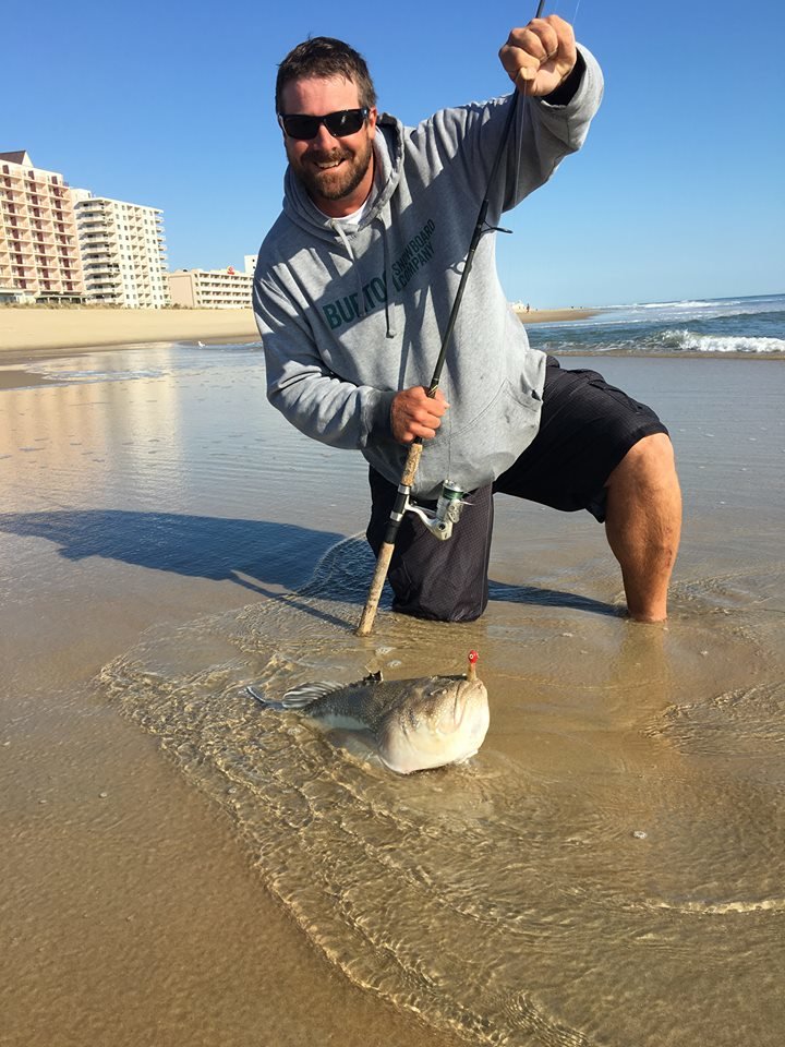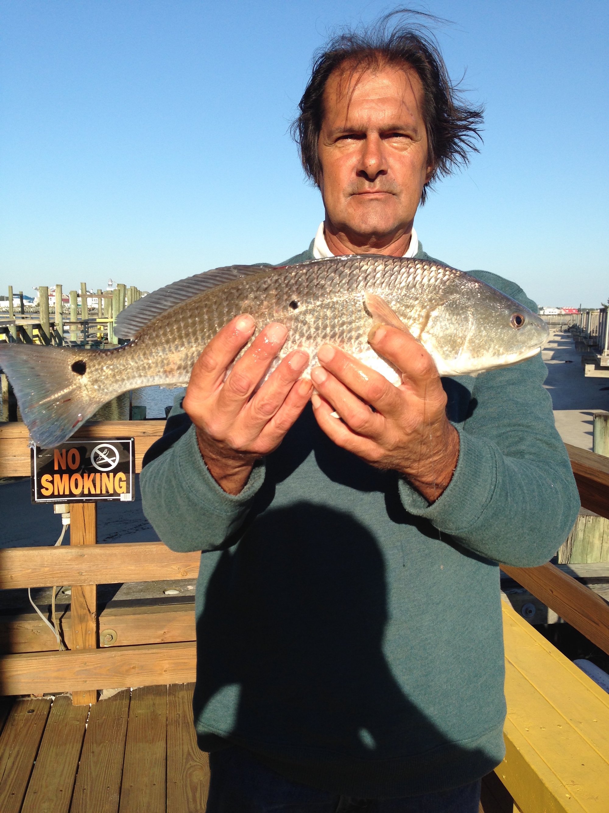 I hadn’t received any messages from Bear down at the Oceanic Pier through the weekend because of the windy conditions, but thankfully that changed today. Don form Delaware posed for a photo with this nice puppy drum that he caught with the pier’s lively sand fleas.