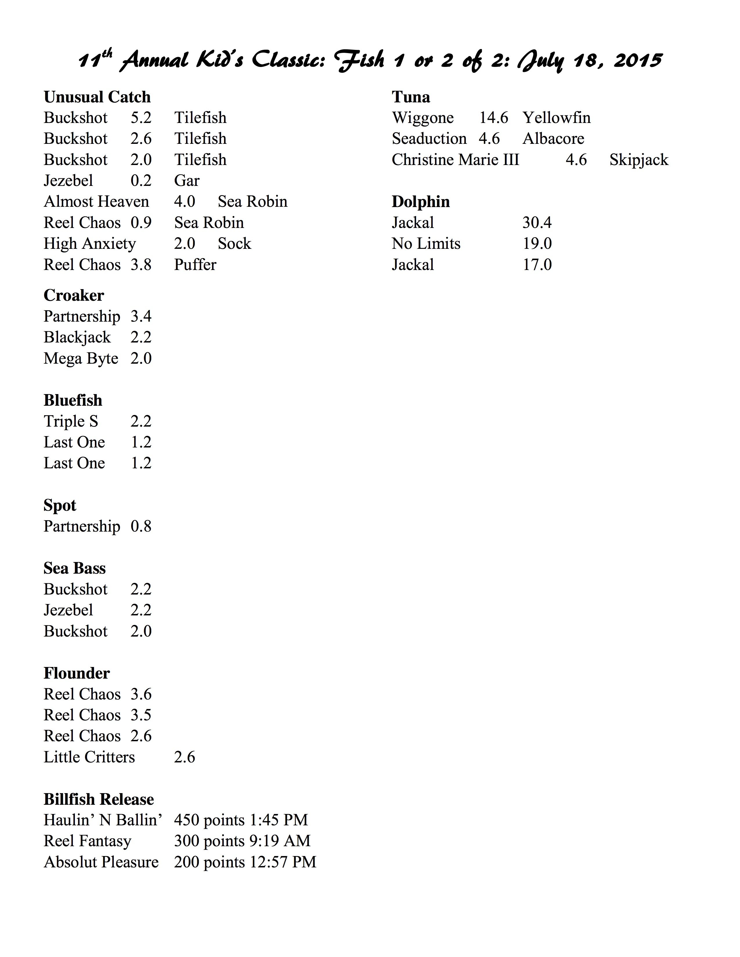 Today was day 1 of the Ocean City Marlin Club’s Kid Classic Tournament. This is a great event for anglers that are 19 years of age or younger. Kids are allowed to fish from a boat or from land, and there are several categories. Here’s how the action looks after one day of fishing.