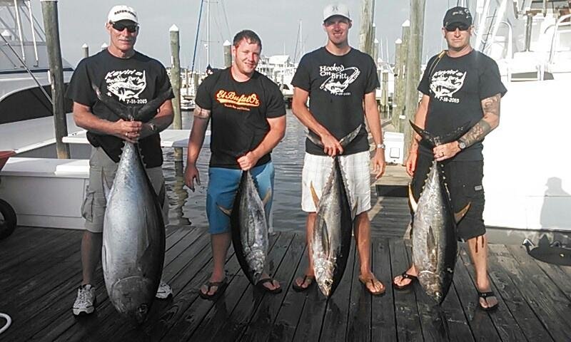 Man you want to talk about an awesome day for the Fish in OC charter fleet!! Today was a banner day for the offshore charter captains and their parties. The weather was absolutely beautiful with plenty of sun and flat calm seas, and the fish were biting. Now that the OC Tuna Tournament is over the chunking has started and it has been very productive. There are still a bunch of sharks out there making it tough for the fleet to get a hooked fish to the boat, but the yellowfin are biting, so it’s worth the risk.
