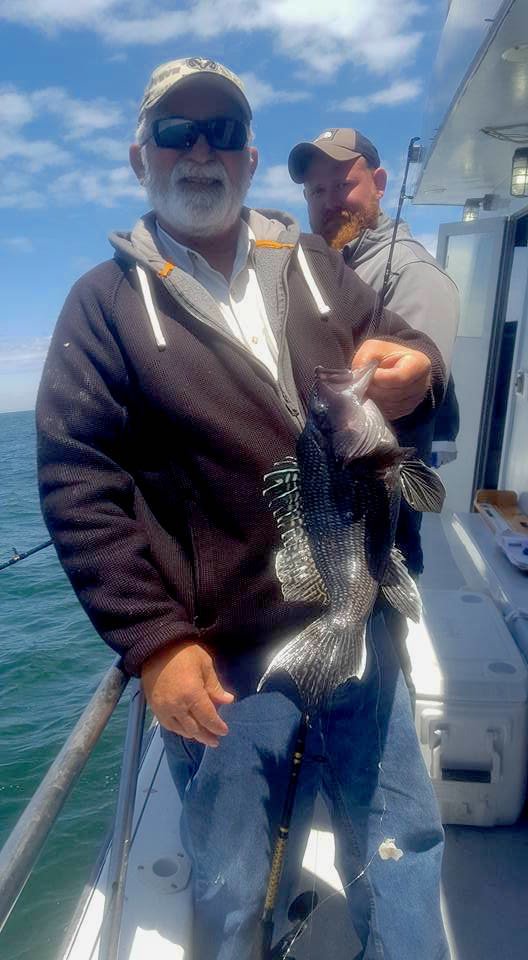 Wes Pollitt from the Morning Star with Captain Monty Hawkins also reported a good sea bass bite today despite the rough conditions to start the day. Wes reported several limits of sea bass today as well with a couple of keeper tautog mixed in. The fish were caught on ocean wrecks today and though it started out a little rough it laid out this afternoon.