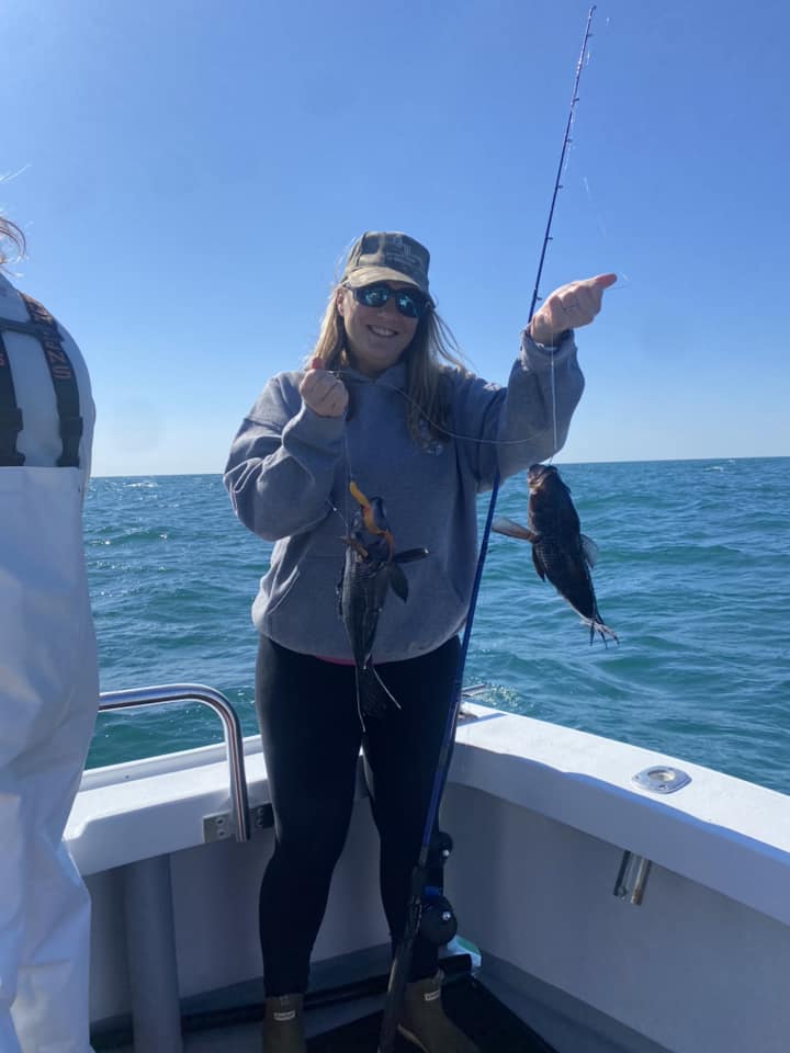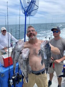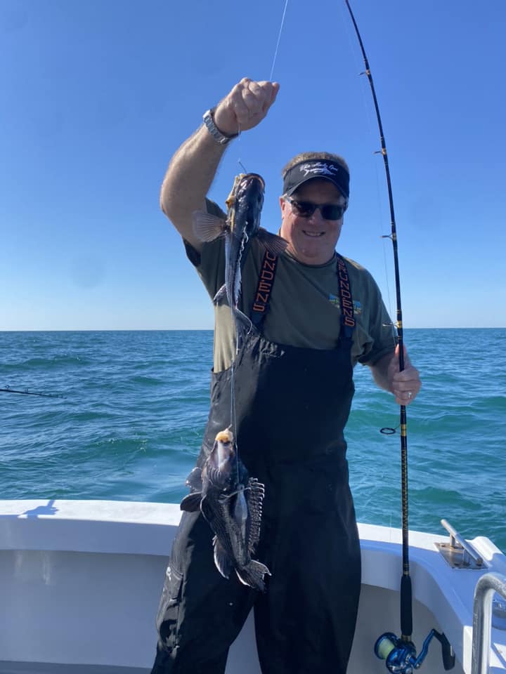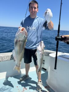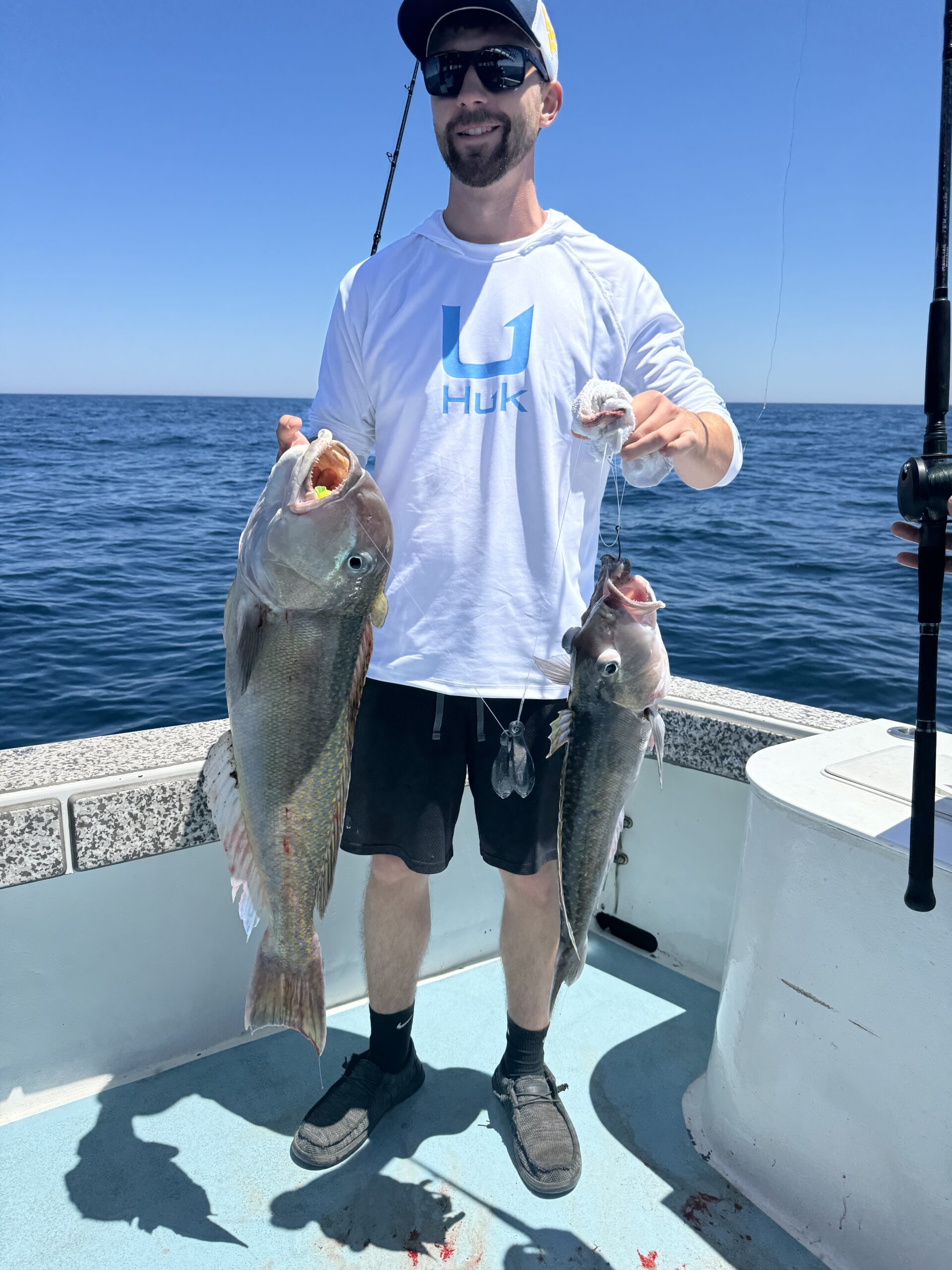 Captain Chase Eberle of Chasin’ Tides Charters did some deep dropping today and it paid off for his crew landing some blueline and golden tilefish for the cooler.