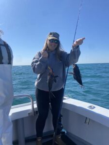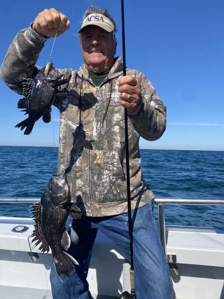 Anglers fishing on board Double Trouble with Captain DJ Churchill have had some great luck with sea bass this week with some nice fish to over 3 pounds coming by the rail.