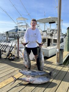 Max McGuire caught his first ever yellowfin tuna fishing in the Poorman’s Canyon with his dad Tim of Atlantic Moving on their private boat Reely Movin’.