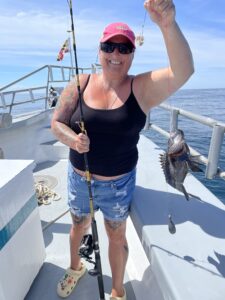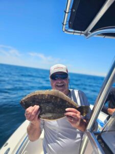 Captain Chris Mizurak of the Angler showed his customers a good time putting them on flounder and sea bass on a flat calm ocean.