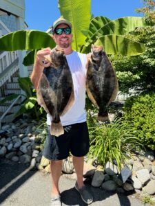 Jack Harris of West OC caught these keeper flounder of 19.5″ and 22″ in the mouth of the Commercial Harbor on jigs with minnows.