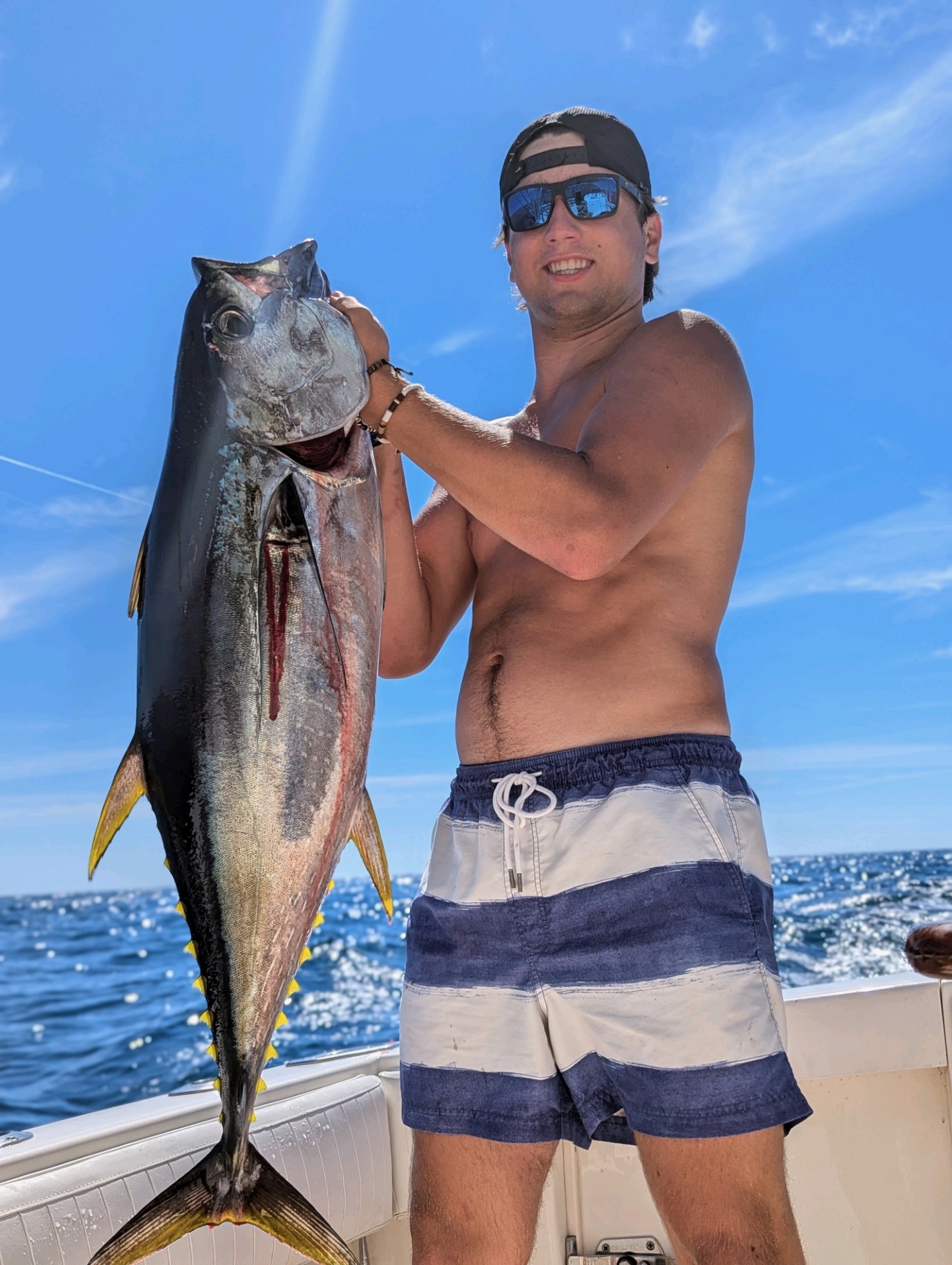 Carson Gebhard was fishing with the private boat Fishizzle in the Poorman’s Canyon today when he landed his first ever yellowfin tuna.