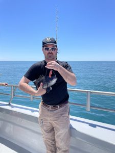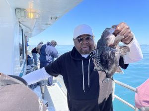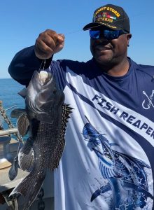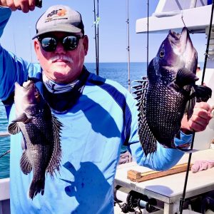 You could not have dialed up a better day to start Maryland sea bass season today. Skies were sunny, temps were warm, seas were flat and the fish were biting. Like I said, couldn’t be better.