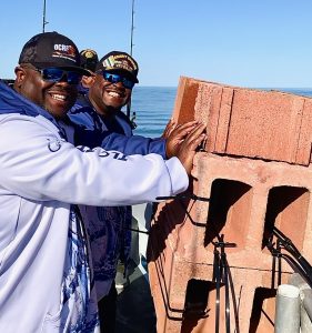 Tyson & Twillie Curry were today’s guest reef builders. Once they’d splashed a 20 block unit from York Building Products we were soon into sea bass.