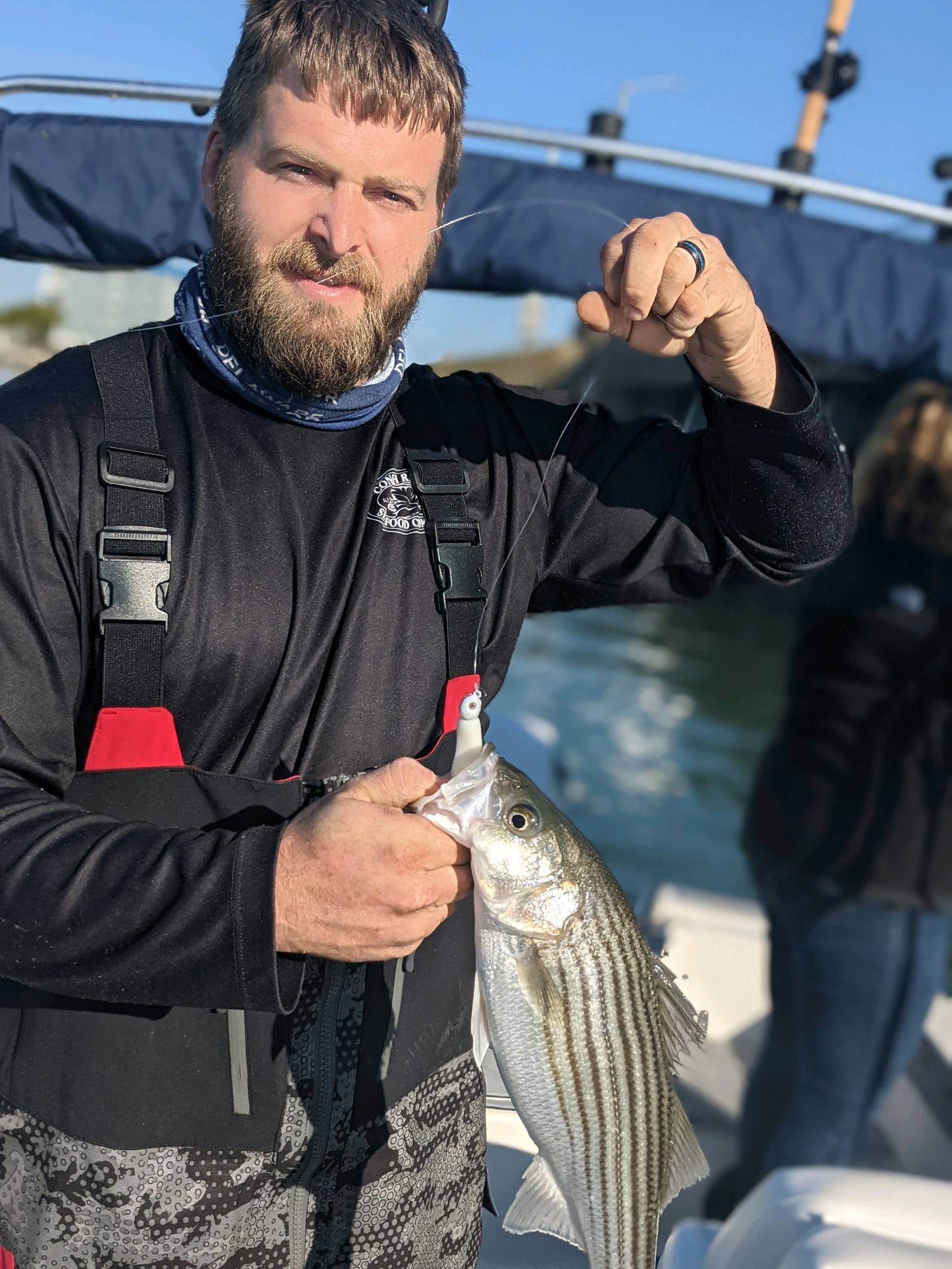 Blake Gunther and his crew had another terrific day of rock fishing at the route 50 bridge and tog fishing at Martha’s Landing. Blake and his friends used custom jigs to capture the tautog and our new Fish in OC Thing A Ma JIG to catch over 20 rockfish at the route 50 bridge.
