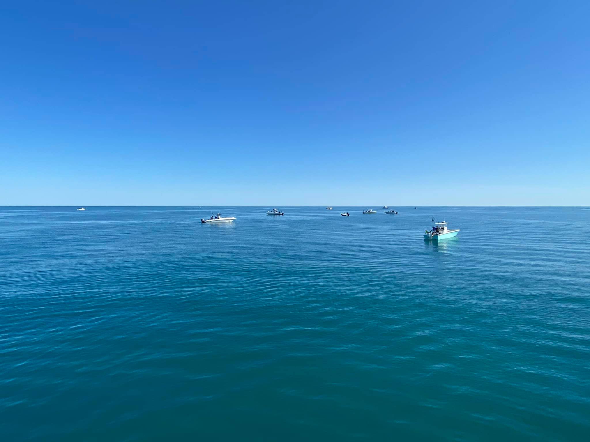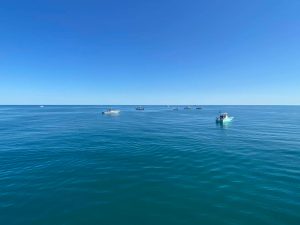 As pretty a day in May as might be had; slick calm, fish biting – even legal to keep some.