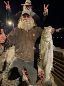 Big Bird Cropper caught himself a nice 30″ keeper rockfish at the route 50 bridge today and last night Shaun Flaherty caught and released a big 35″ fish.