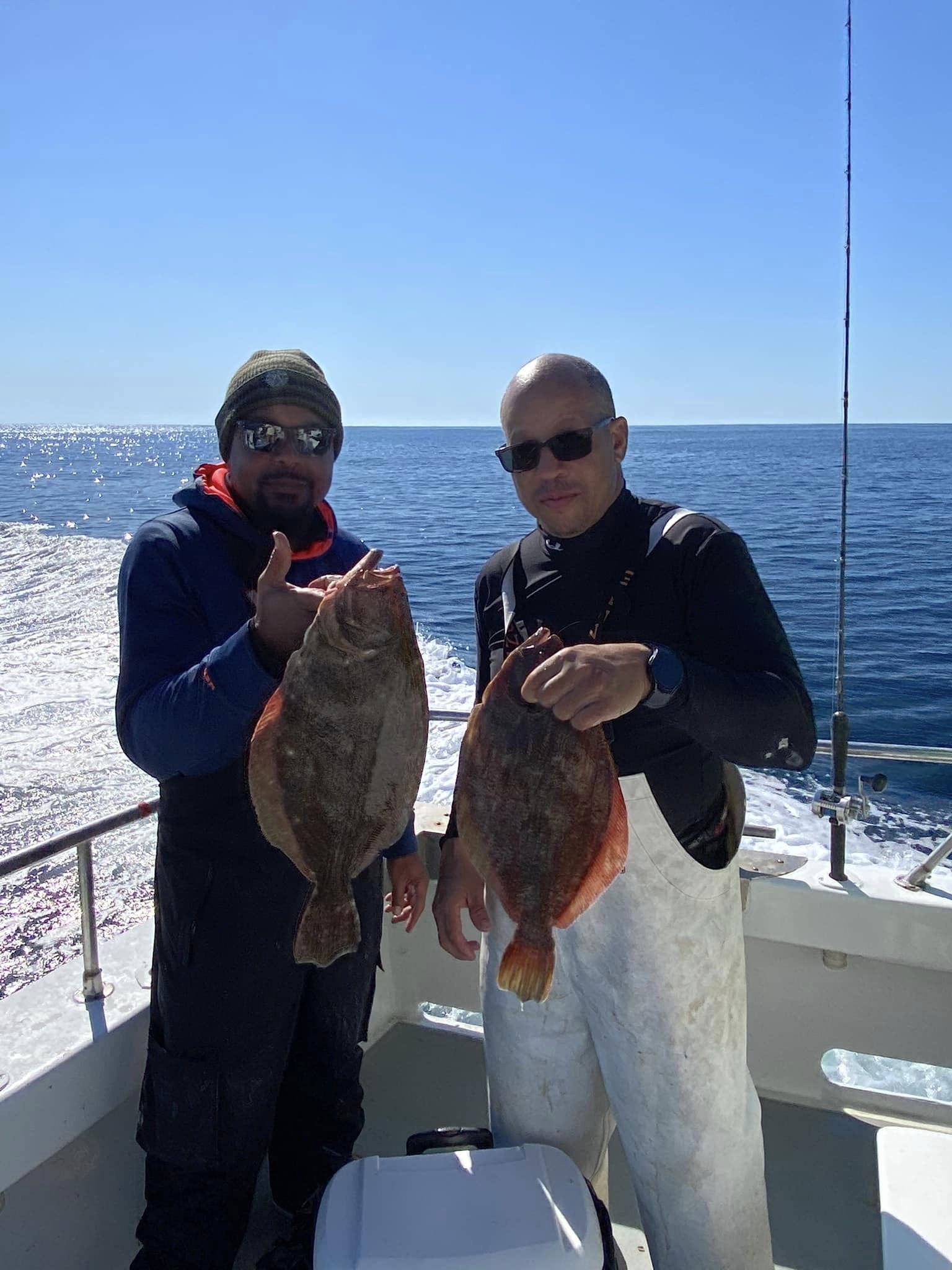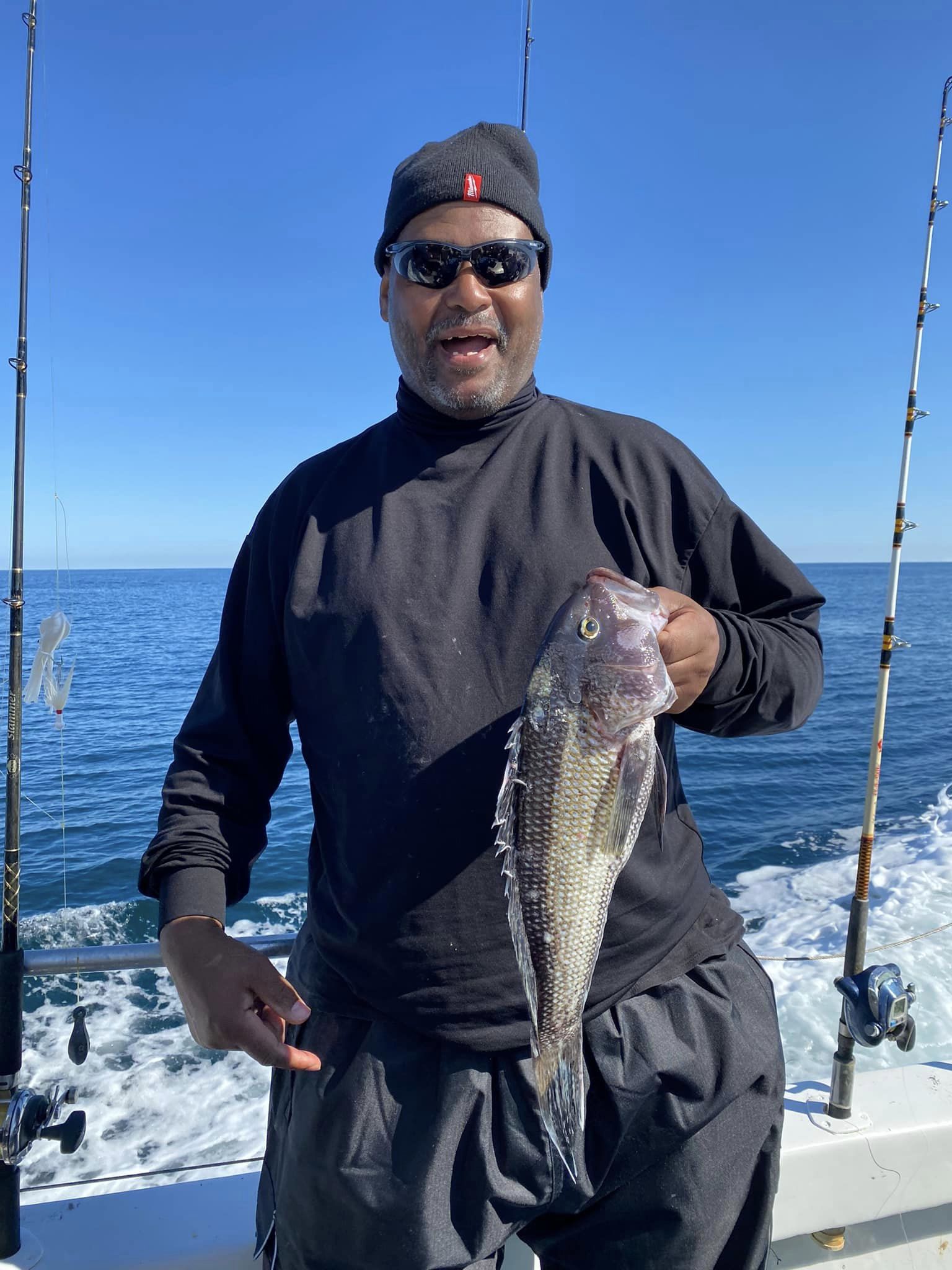 We had a chilly start to the day this morning, but when the sun came up it warmed up nicely and was absolutely gorgeous. The ocean was flat calm and the fish were snapping for most so it was a great day to be out on the water.