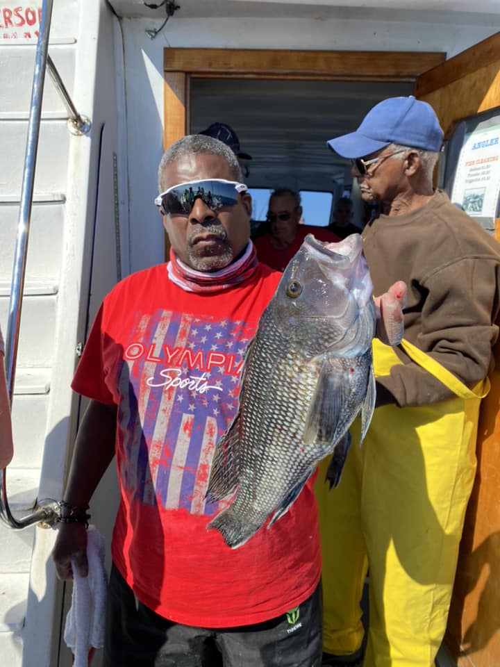 Captain Chris Mizurak and his crew on the Angler had a very nice day with slick calm conditions and good fishing. Anglers on the Angler had a bunch of nice sea bass, some bluefish and a few flounder.