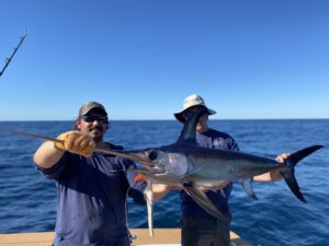 I had the pleasure of heading out on the Reel Current with Captain James Coane and crew today for a new episode of Hooked on OC and we had a great time and caught some fish on top of it. We bailed over 20 mahi to about 10 or so pounds and we had three swordfish bites catching two. The first was a 42″ runt that was released and the second was a nice 120 pounder that went in the fish box. Headed out again tomorrow to enjoy the weather and do some shooting on RoShamBo with Captain Willie Zimmerman and crew.