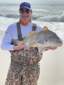 David Moore has been back on the beach lately and he too has found the black drum biting well. David has found some nice black drum, some small school sized striped bass and even a couple of blowfish.