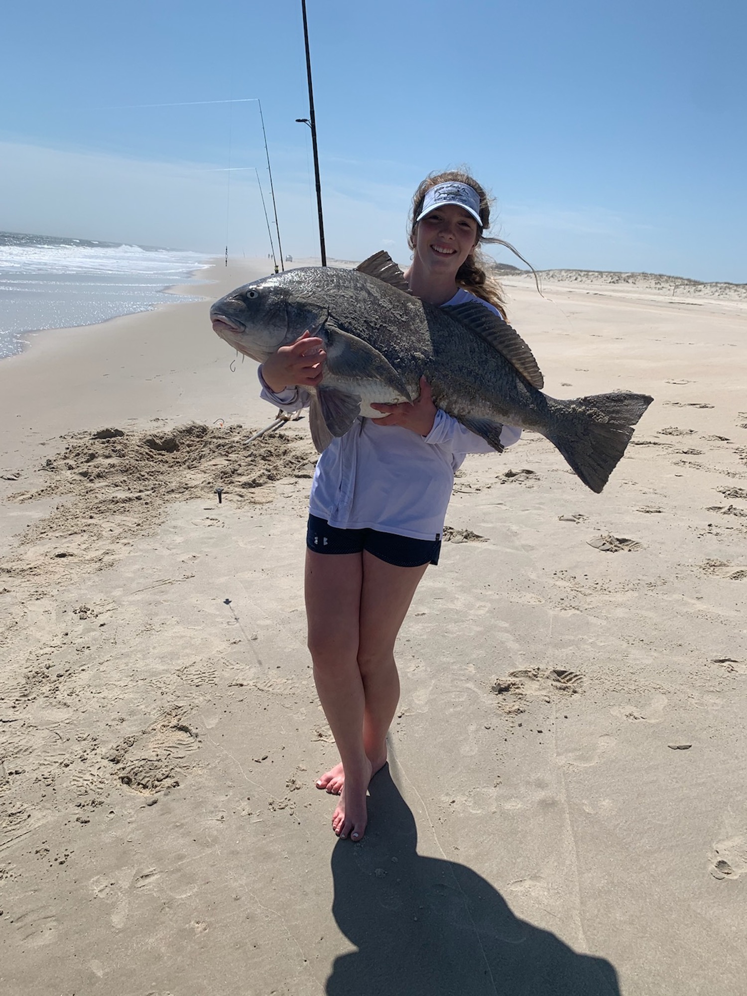 Fishing for black drum off of Assateague Island has been on fire the past few days and today was no different. Young Emily Blume was fishing with the Simpsons today and caught her first black drum ever. The big fish was 44″ long and weighed in at a whopping 48 pounds…Nice work Em!