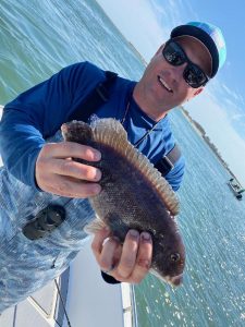 Tautog fishing in the ocean has been very good lately and today I saw more of the same with plenty of nice fishing pics coming in. Captain Chase Eberle of Chasin’ Tides Charters had another awesome day of fishing with not only a limit of tog for his guys, but also several releases including several very big fish. Captain Chase put his crew on nine double digit tog today the included fish of 10, 10, 11, 12, 13, 14, 14, 15 and 16 pounds….that is some crazy good fishing!