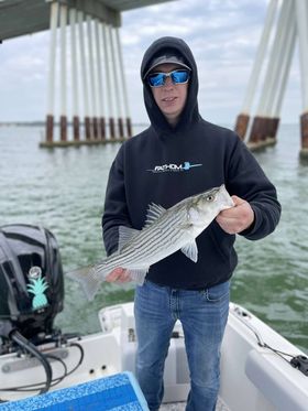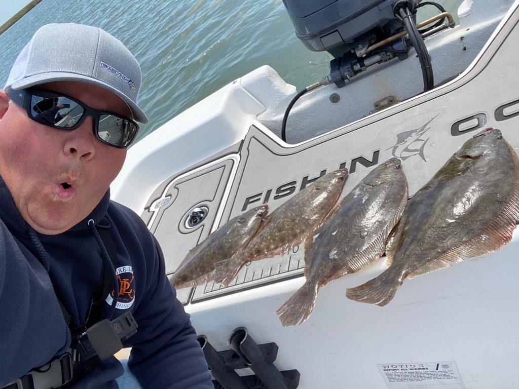 Jordan Helsel and his gang had some fun with the catch and release rockfish this afternoon and Jordan also landed a keeper flounder in the Thorofare using the Deadly Double in chartreuse with a white gulp.