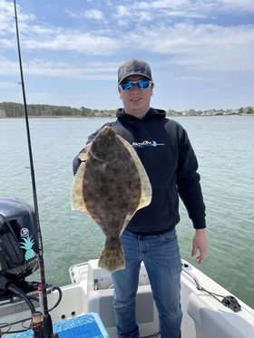 Captain Wayne Blanks of Bayside Guide Service found some flounder in the Thorofare this morning including this 18.5″ keeper.