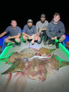 Captain Marc Spagnola of Dusk to Dawn Bowfishing is back on the water making customers happy. There has been some good shooting day and night for cow nosed and southern rays.