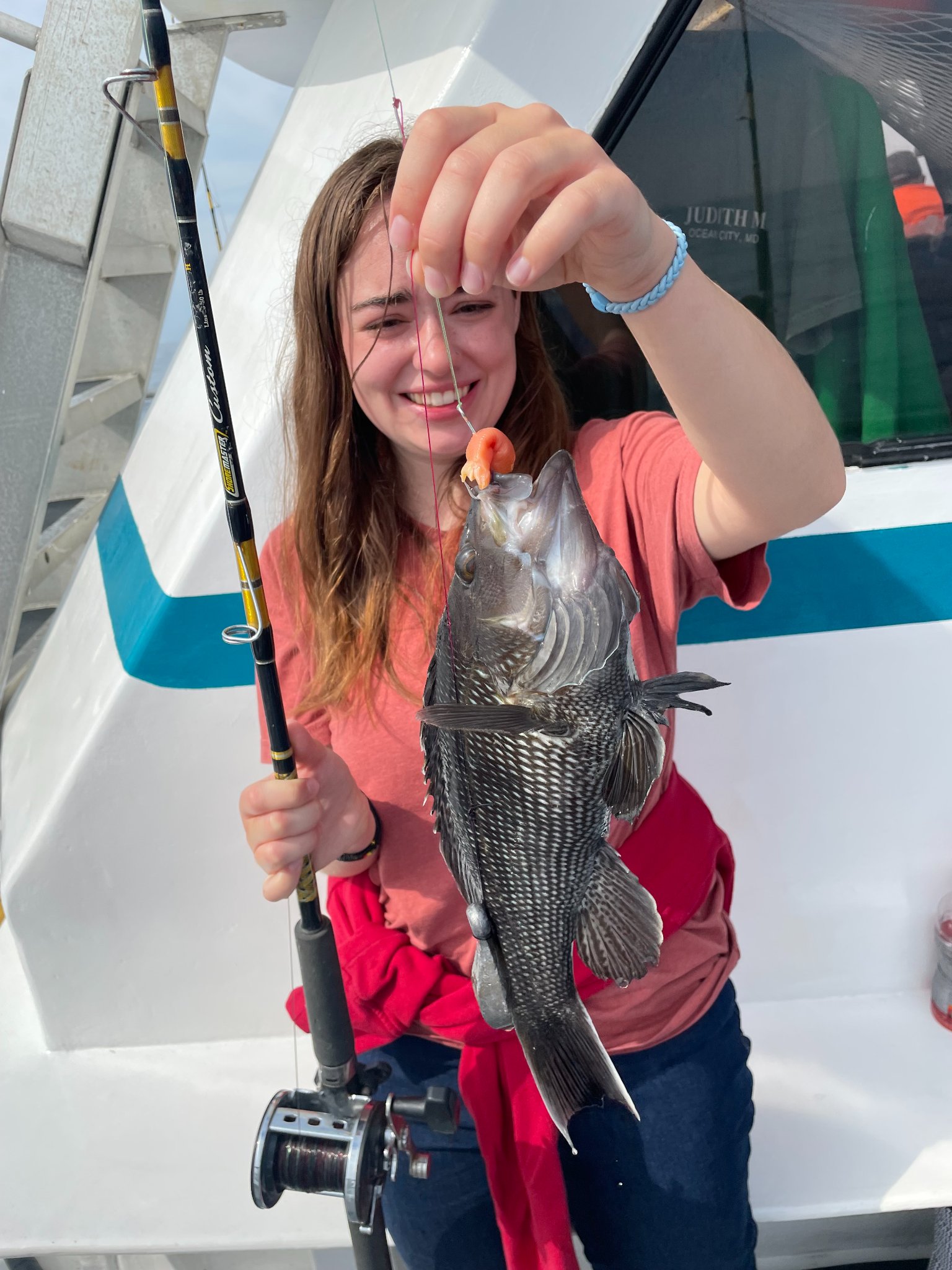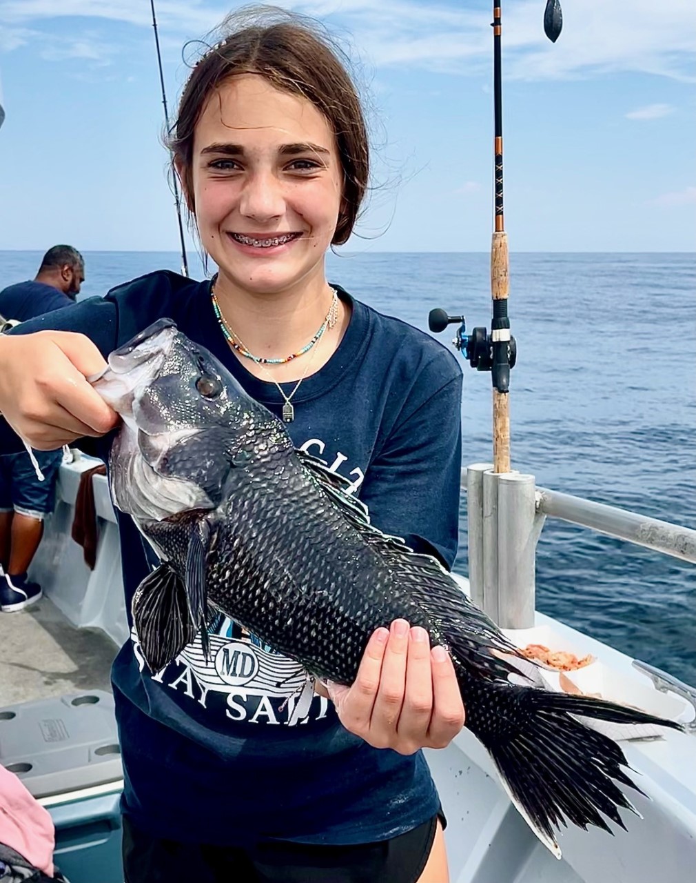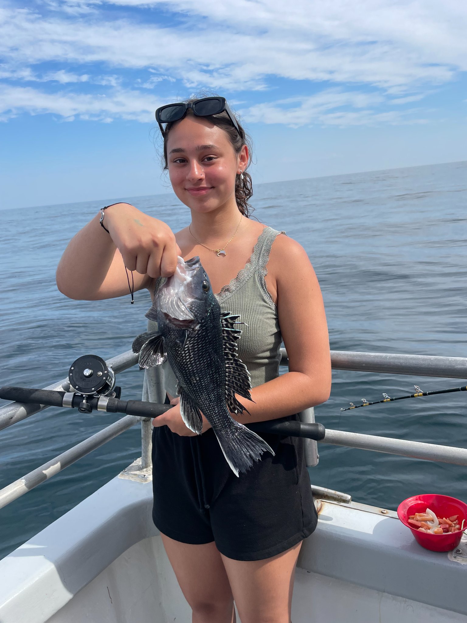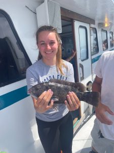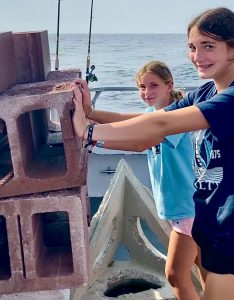 Sisters Kensi & Nora from North Carolina (whom you will read of again shortly) made short work of today’s reef blocks. It would be a while before we started fishing. (Umm.. Had to get away from sharks?)