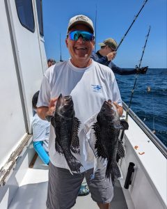 Anglers on board the Ocean Princess with Captain Victor Bunting had good fishing today with some of the same…..dinner that will consist of sea bass and flounder.