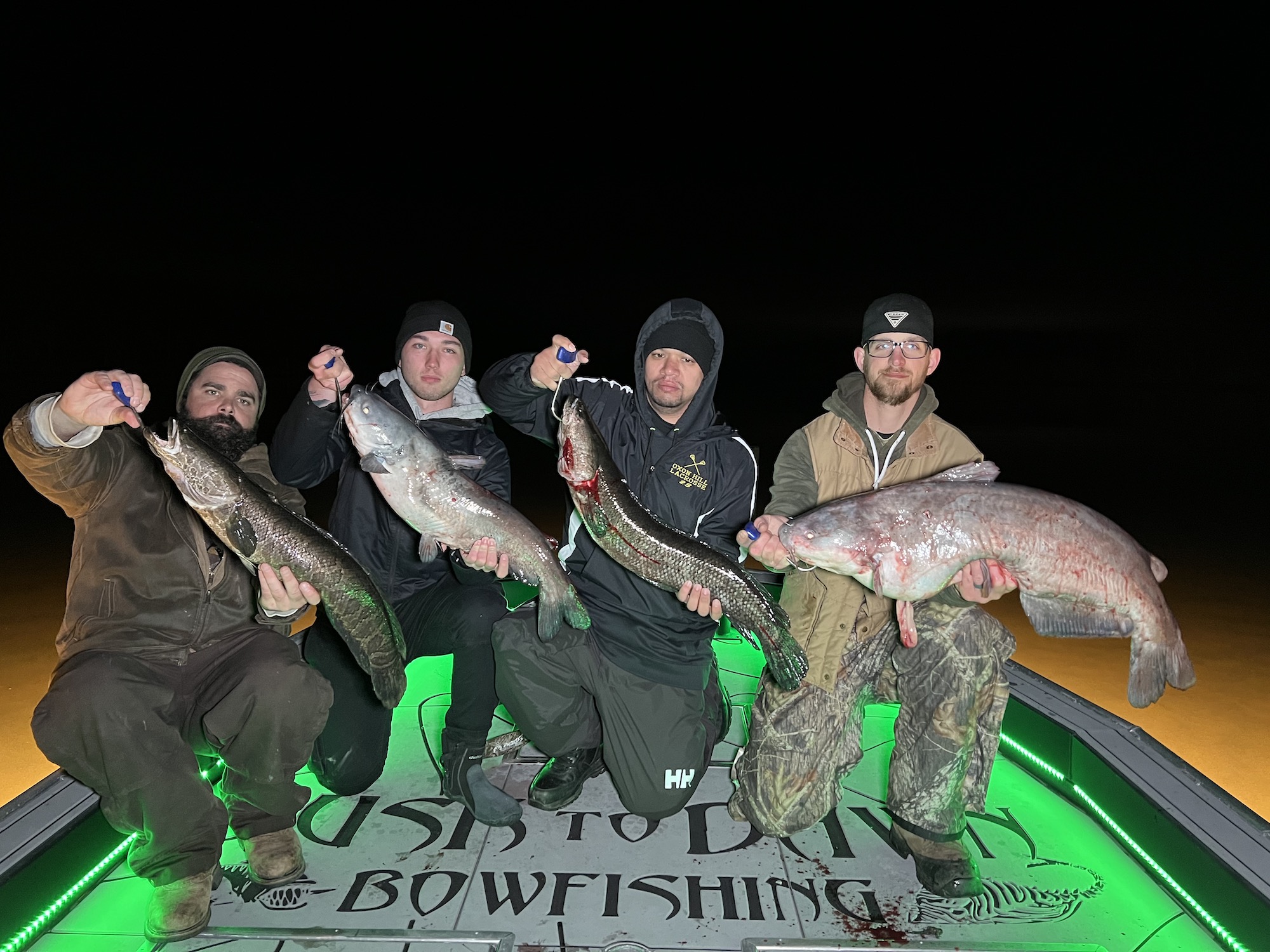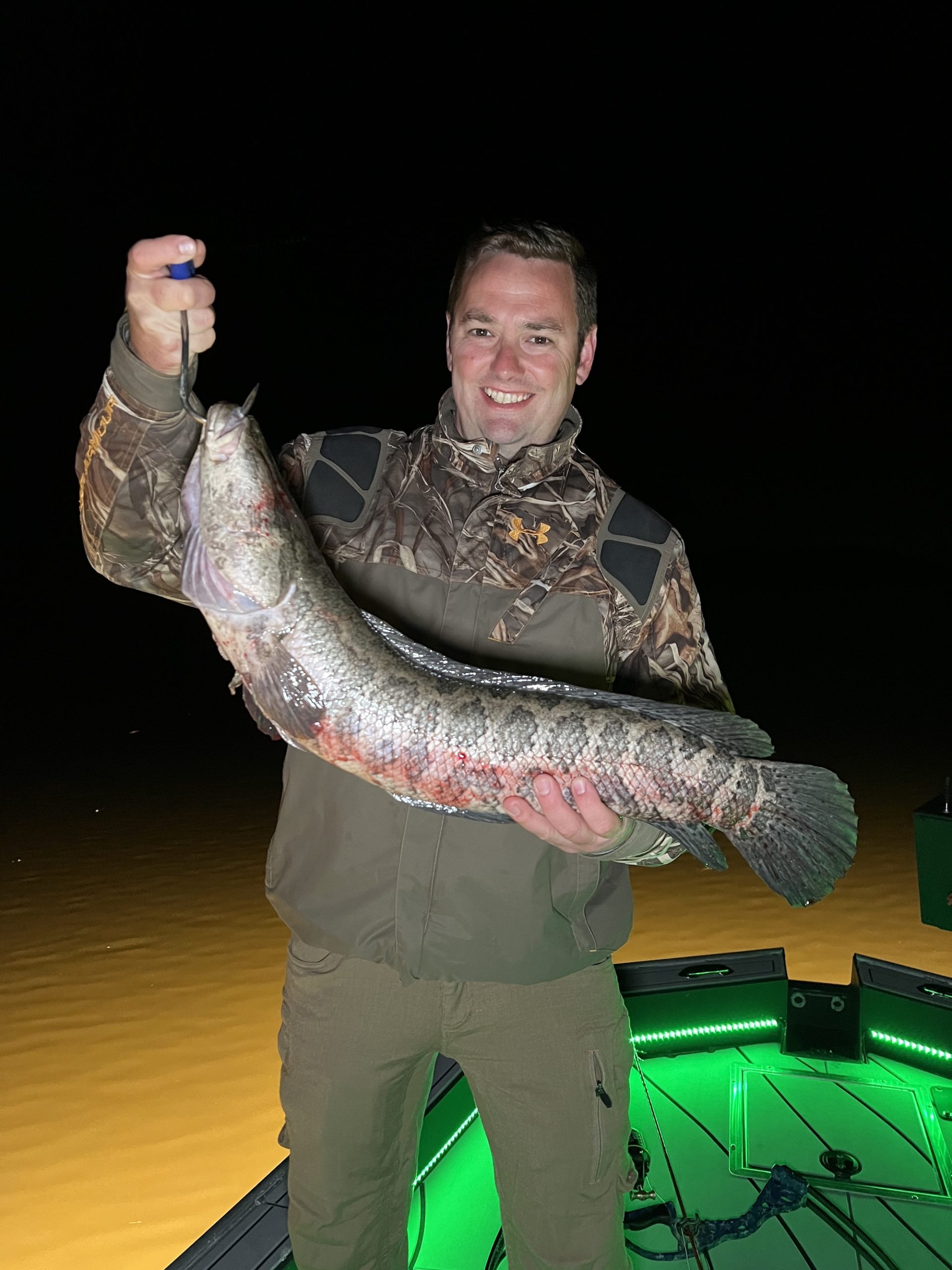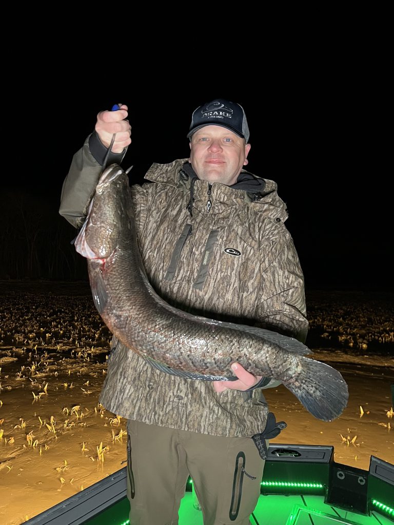 Captain Marc Spagnola of Dusk to Dawn Bowfishing has had a couple of successful trips on the river the past few nights and is showing shooters a real good time. Captain Marc’s crews have seen some nice snakeheads and some very big catfish end up in the cooler.