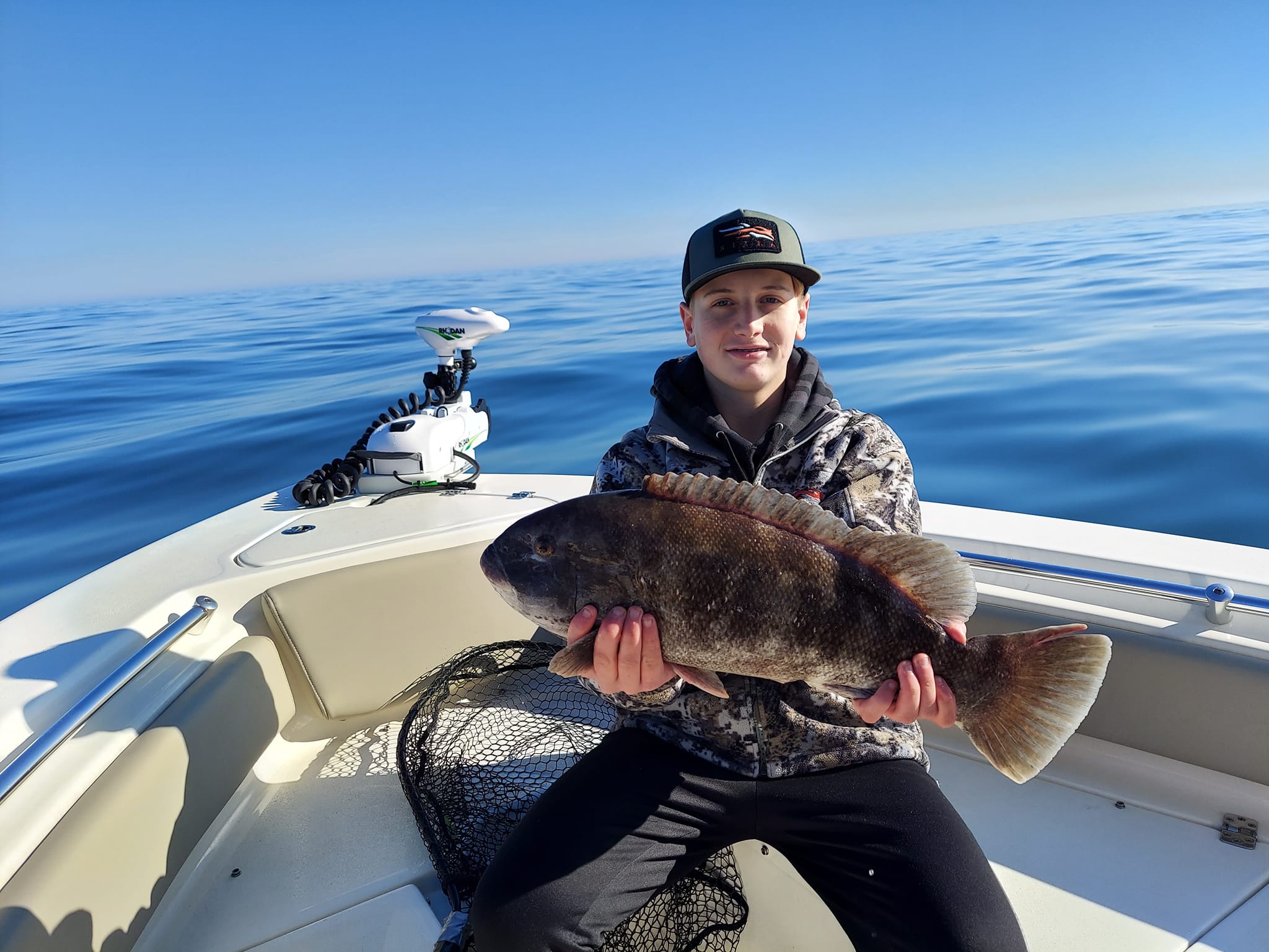Before the weather there was some very good fishing for both tog and rockfish and it was a busy New Year’s weekend. Morgan Mericle enjoyed some tog fishing with Captain Monty on the Morning Star and then fished with his buddies Tyler and Willie for rockfish. The guys had some nice fish caught trolling and jigging.