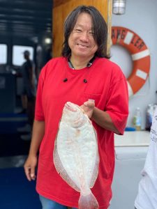 Captain Chris Mizurak of the Angler reported a good bite with the sea bass and at least one keeper flounder for the flounder slayer Ken Yuen.