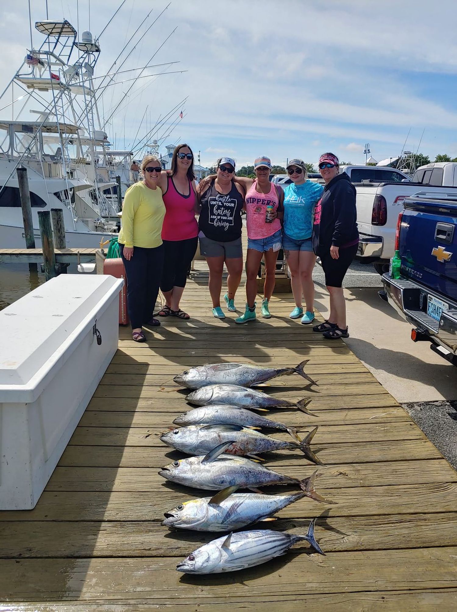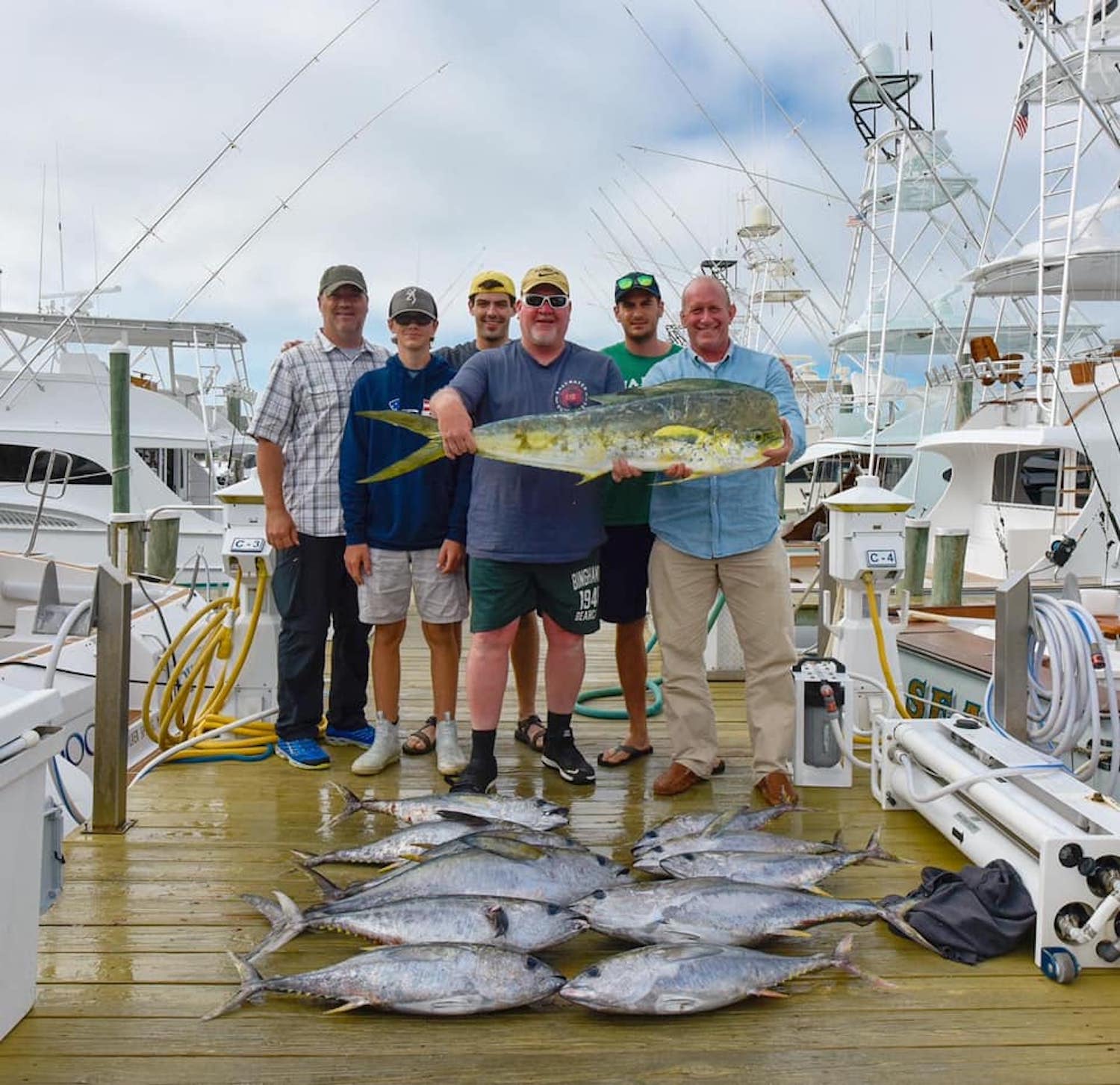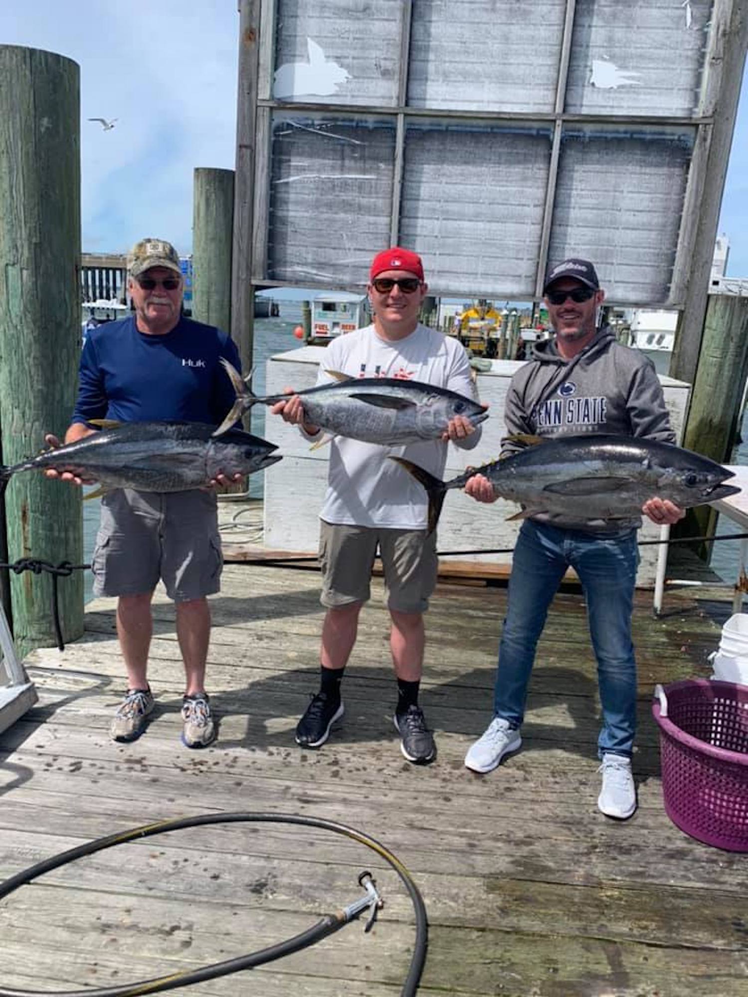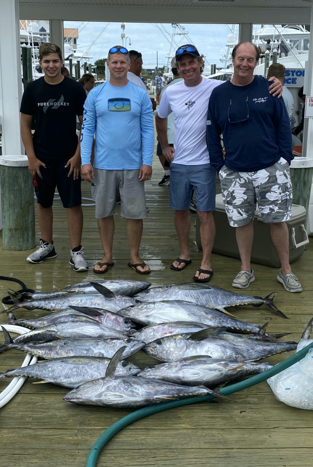 The crew of RoShamBo with Captain Willie Zimmerman ended up with a nice pile of yellowfin tuna on the dock at the Ocean City Fishing Center.