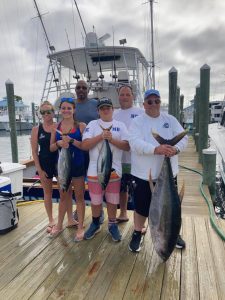 The crew of Reel Chaos with Captain Anthony Matarese at the helm had a great day too with a pile of over a dozen yellowfin tuna on the dock at Sunset Marina.
