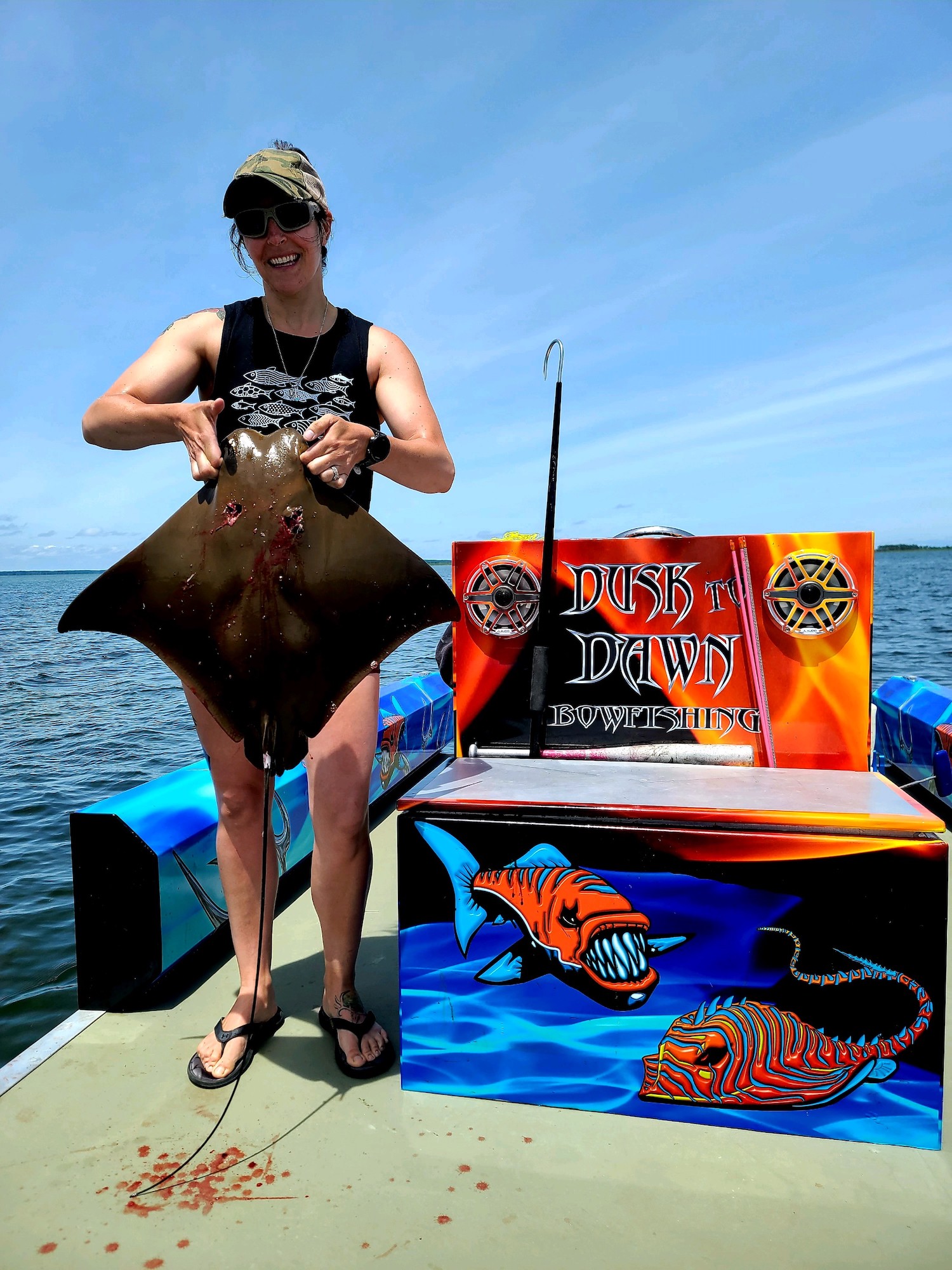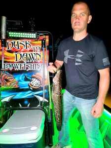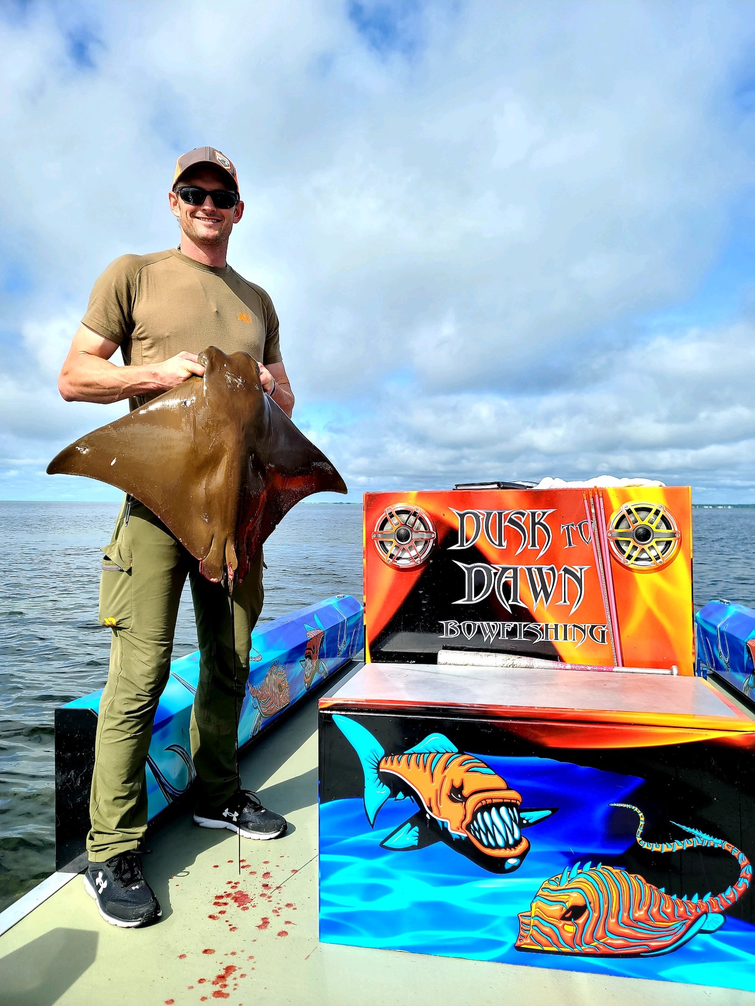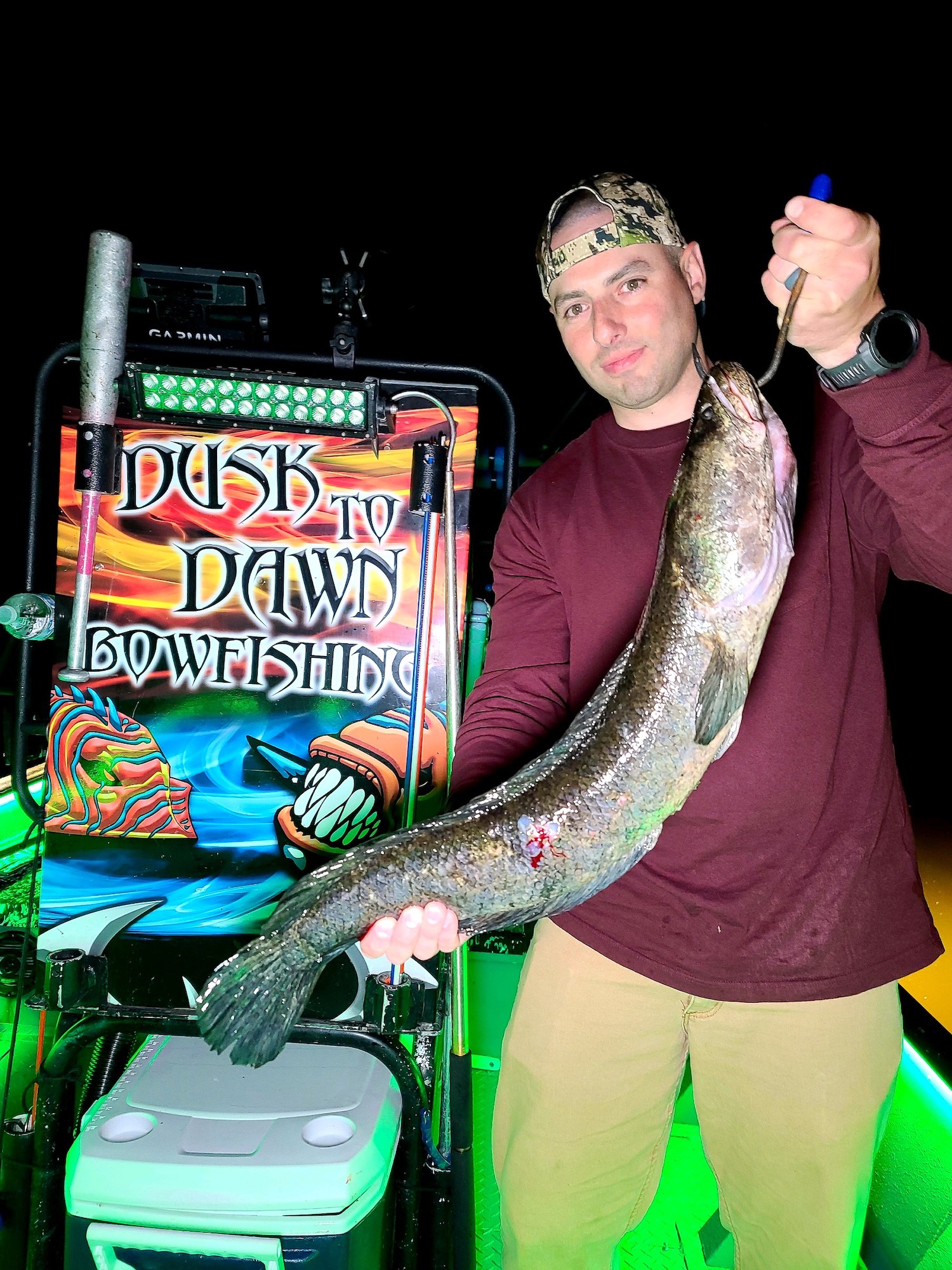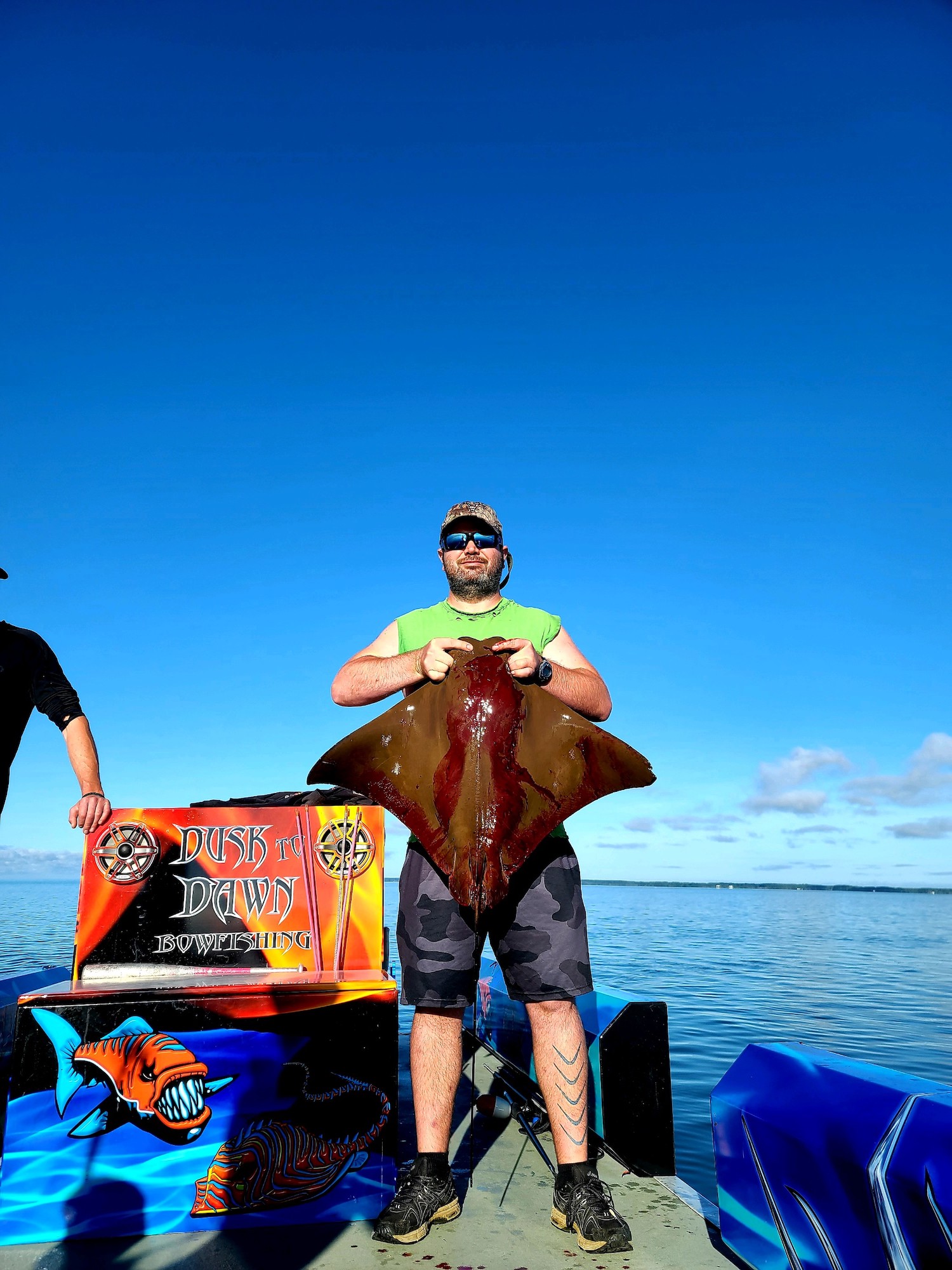 Captain Marc Spagnola of Dusk to Dawn Bowfishing has bought up some stock in 5 Hour Energy and Visine and has been putting it to good use lately. Captain Marc is showing shooters a great time both day and night for snakeheads and cow nosed and southern rays.