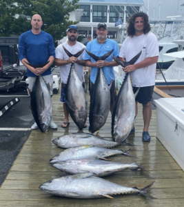 Yesterday, Captain Chris Little and the crew of the Talkin’ Trash had an epic day that ended with four bigeye tuna and four stud yellowfin tuna on the dock.